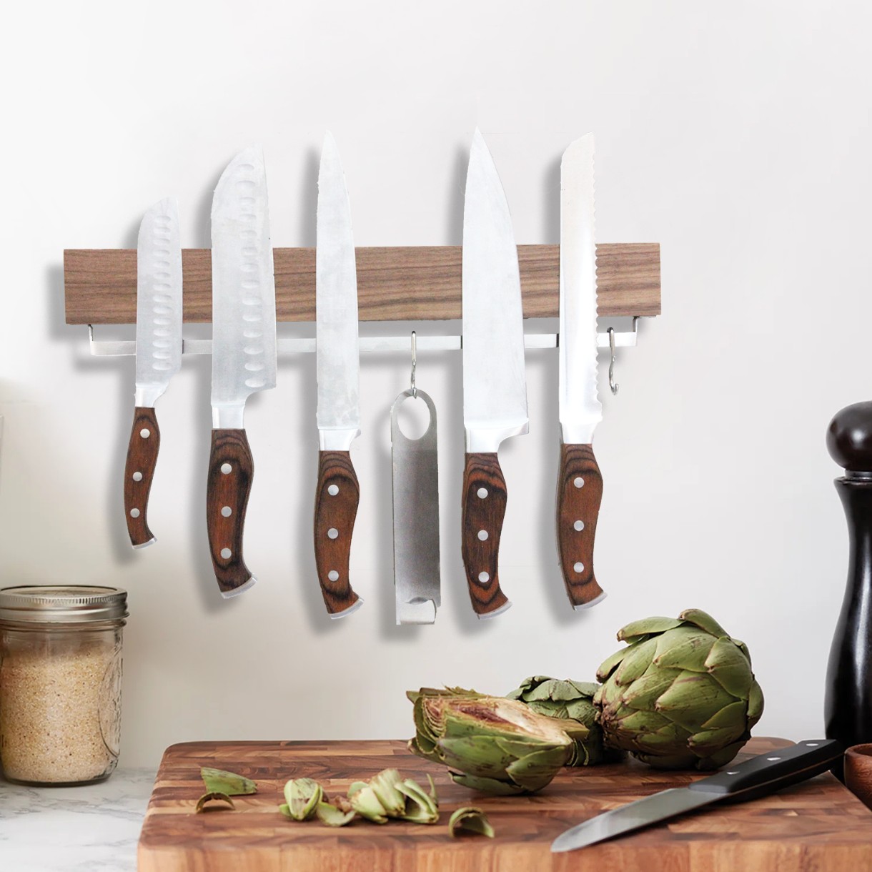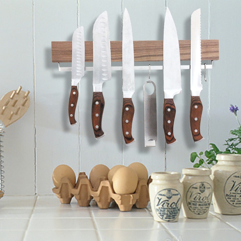自营Nordic Style Wooden Knife Rack with Hidden Storage Space Saving for Small Kitchen Bar Counter Wine Cabinet北欧风木质刀架(四个挂钩),北欧风木质刀架,小户型厨房、吧台酒柜适用,隐藏式收纳省空间,颜值担当