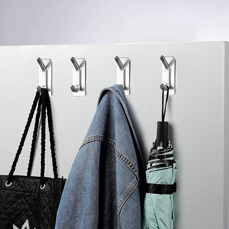 首页> 全部类目> 衣架和挂钩> 4-Piece Heavy-Duty Adhesive Hooks: Strong Adhesion Without Residue, No Drilling Required, Perfect for Storage in Bathroom, Kitchen and Entryway