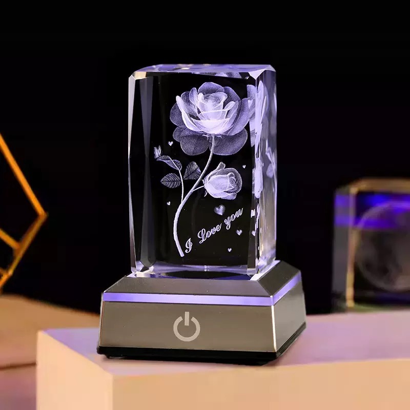 3D Crystal LED Night Light - USB-Powered Home Decor Gift for Birthdays/Weddings3D水晶摆件可发光,USB 供电的生日 / 婚礼家居装饰礼品