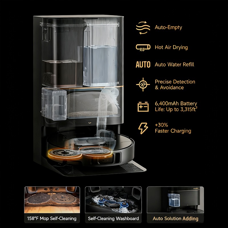 DREAME X40 Ultra Robotic Vacuum with Removable & Liftable Mop 12,000Pa SuctionX40 Ultra-Black扫地机,产品特点: