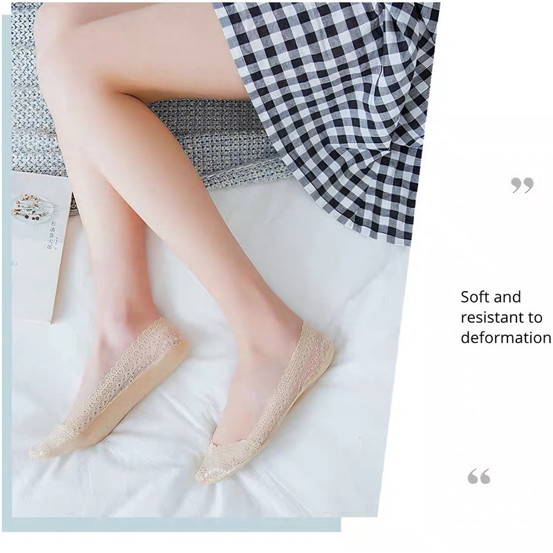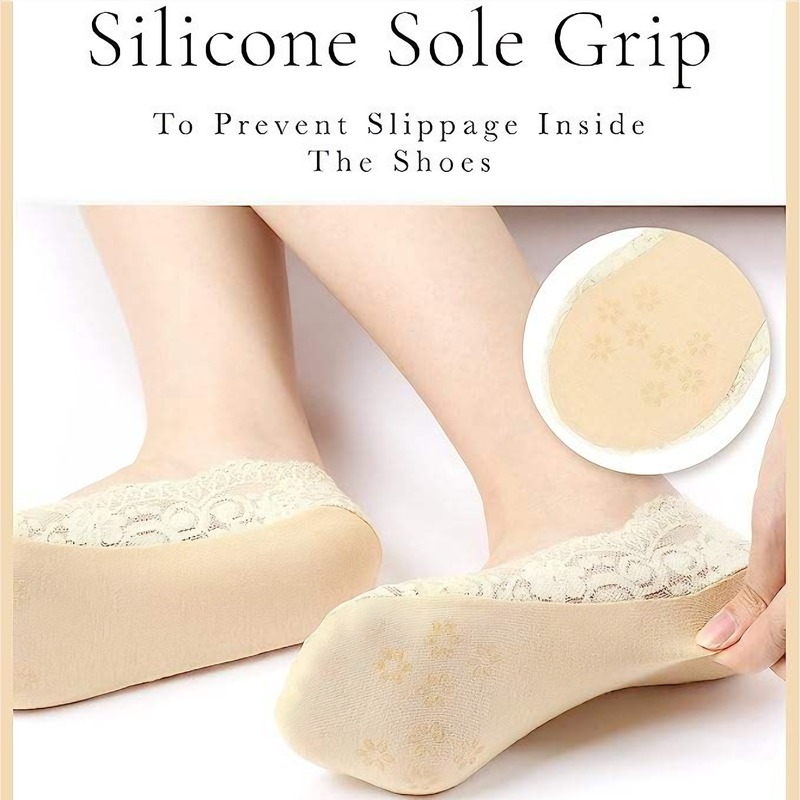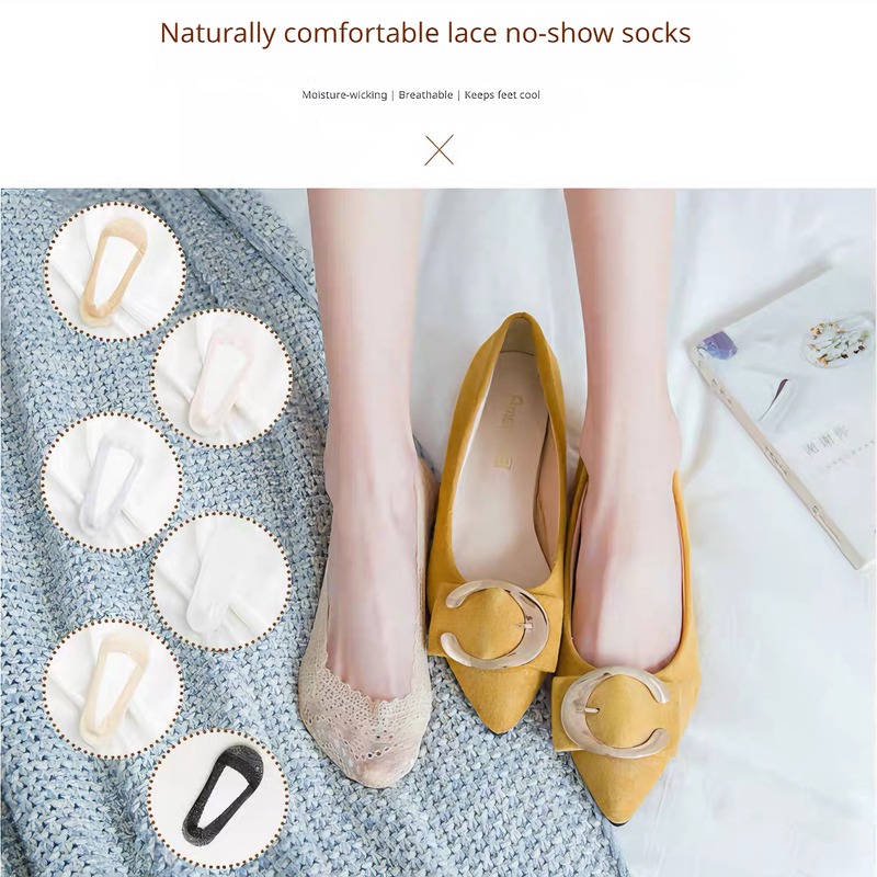 首页> 全部类目> 袜子> Lace Trimmed Invisible Socks - Breathable Skin-Friendly No Show Socks with Elegant Lace Design for Women