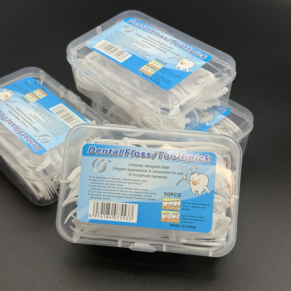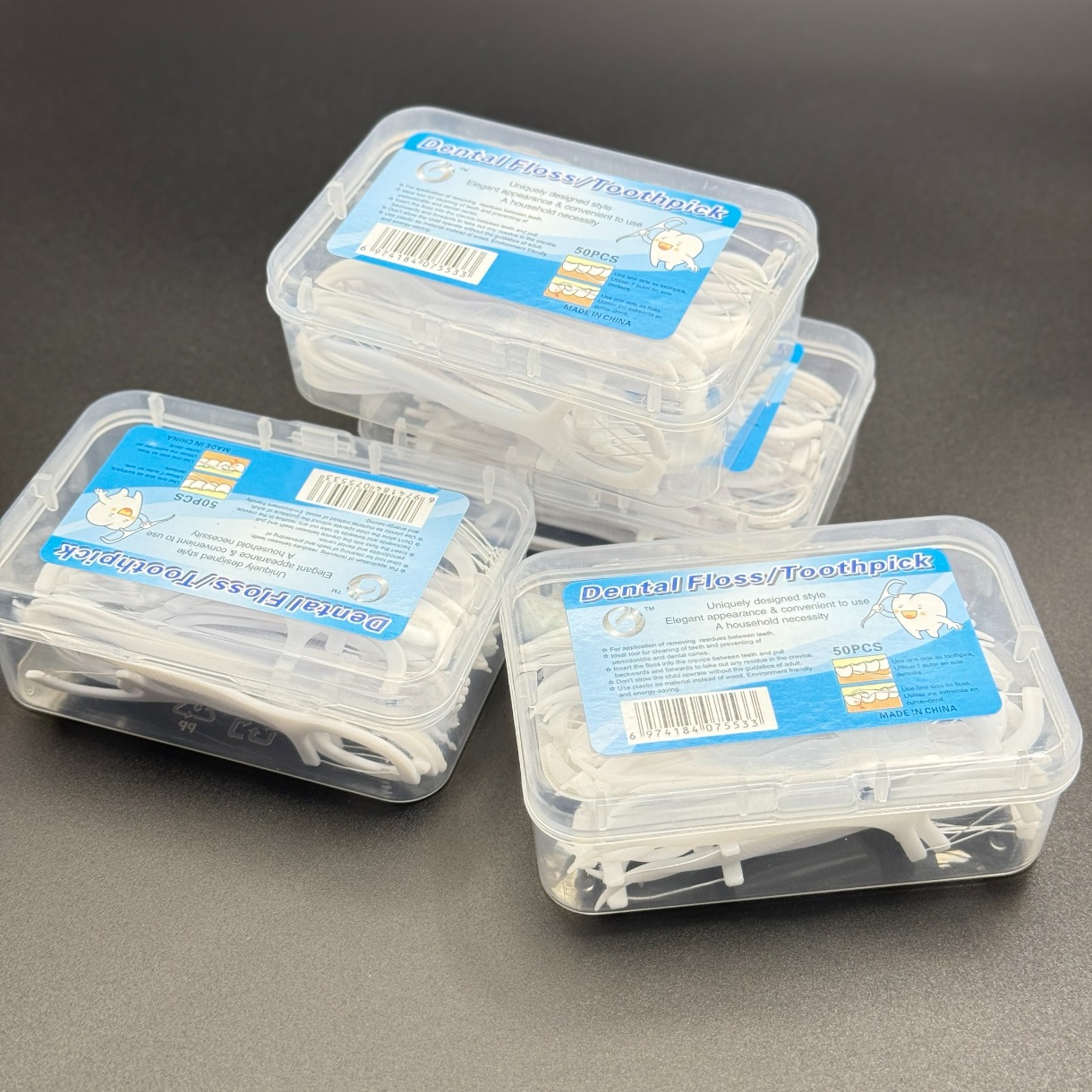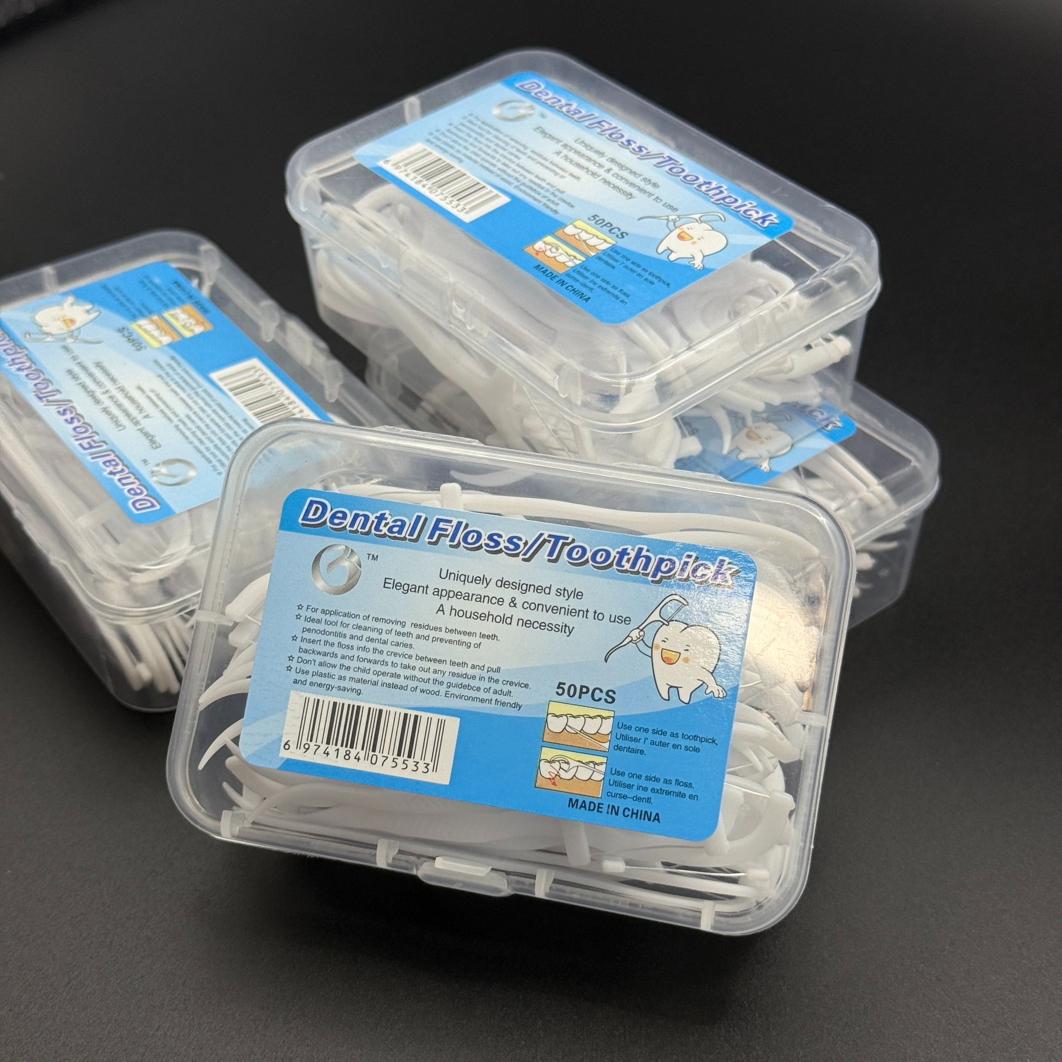自营50-count Floss Sticks with Sealed Storage Box. Ultra-slim And Smooth, with Advanced Cleaning Technology, The Floss Stick Is Suitable for Oral Care, And The Floss Does Not Break Or Wear. Portable Disposable Floss Stick, A Must-have for Daily Travel50支牙线棒附带密封收纳盒。超薄光滑,采用先进清洁技术,适合口腔护理,牙线不易断裂或磨损,便携式一次性使用,日常旅行必备,满足长期口腔清洁需求。