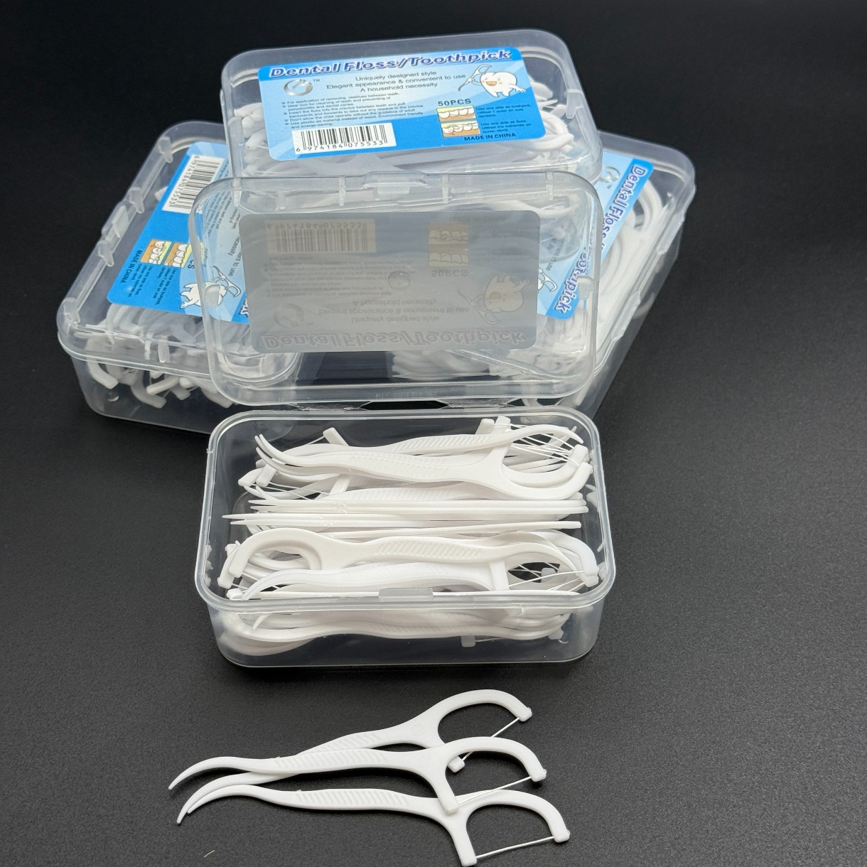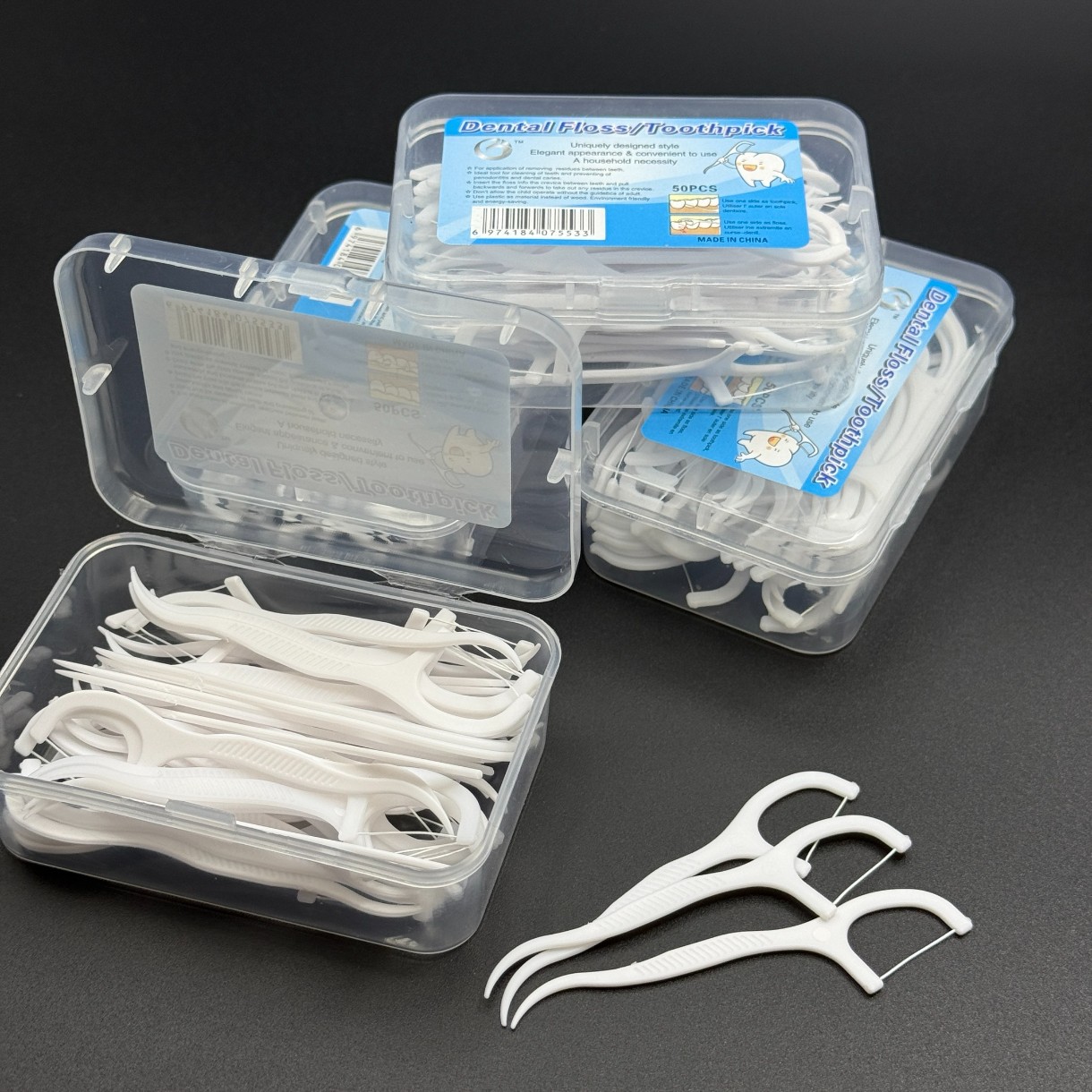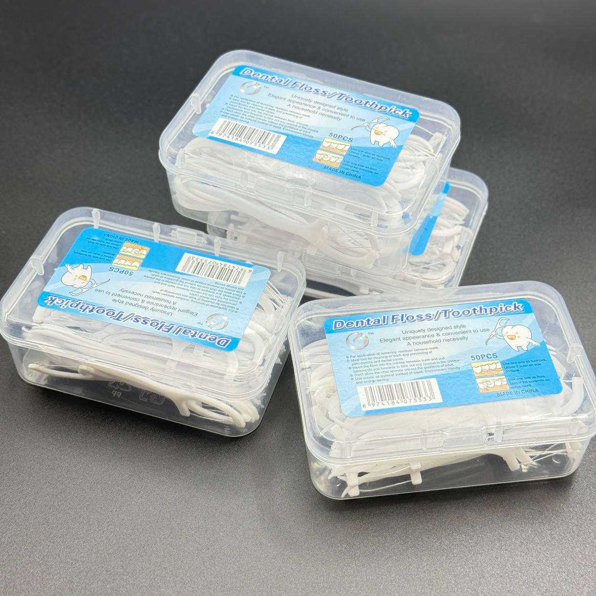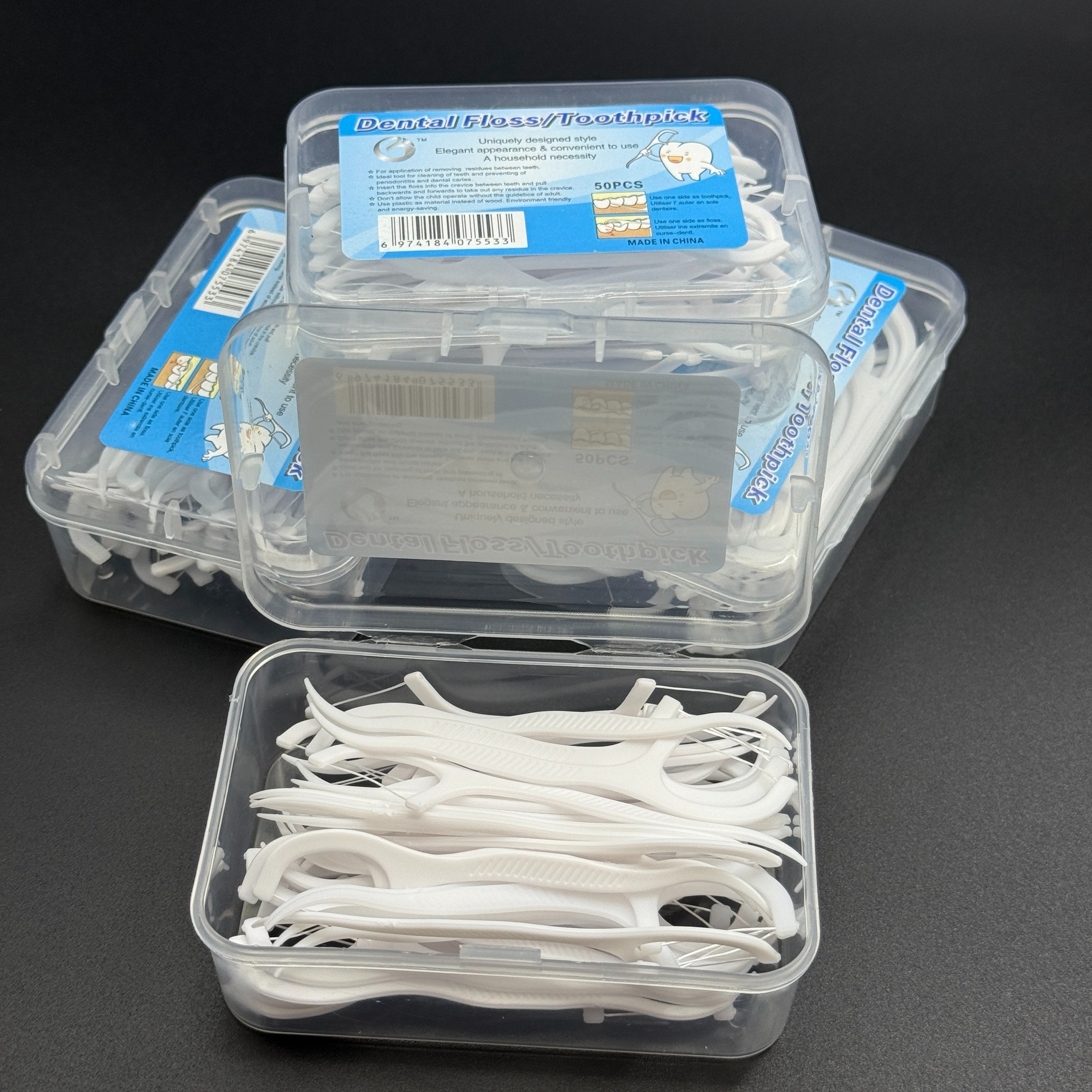 自营50-count Floss Sticks with Sealed Storage Box. Ultra-slim And Smooth, with Advanced Cleaning Technology, The Floss Stick Is Suitable for Oral Care, And The Floss Does Not Break Or Wear. Portable Disposable Floss Stick, A Must-have for Daily Travel50支牙线棒附带密封收纳盒。超薄光滑,采用先进清洁技术,适合口腔护理,牙线不易断裂或磨损,便携式一次性使用,日常旅行必备,满足长期口腔清洁需求。