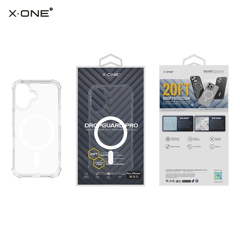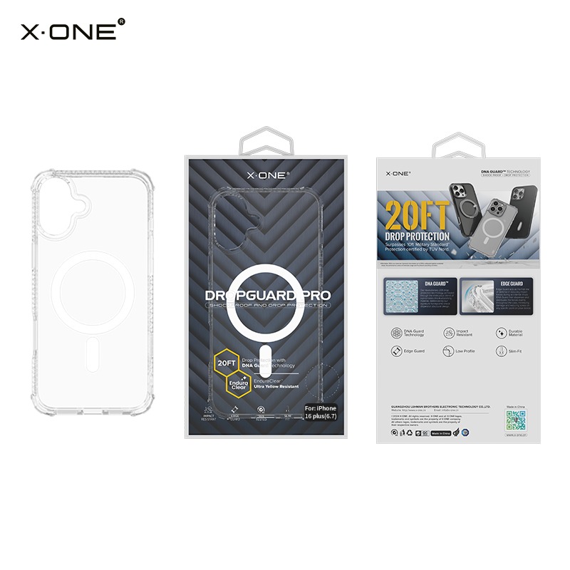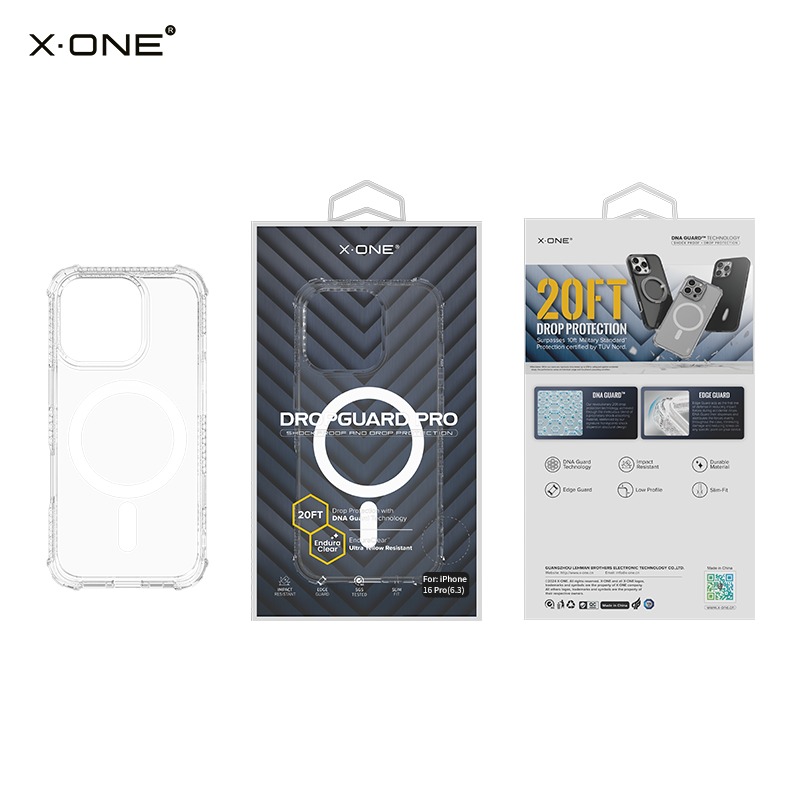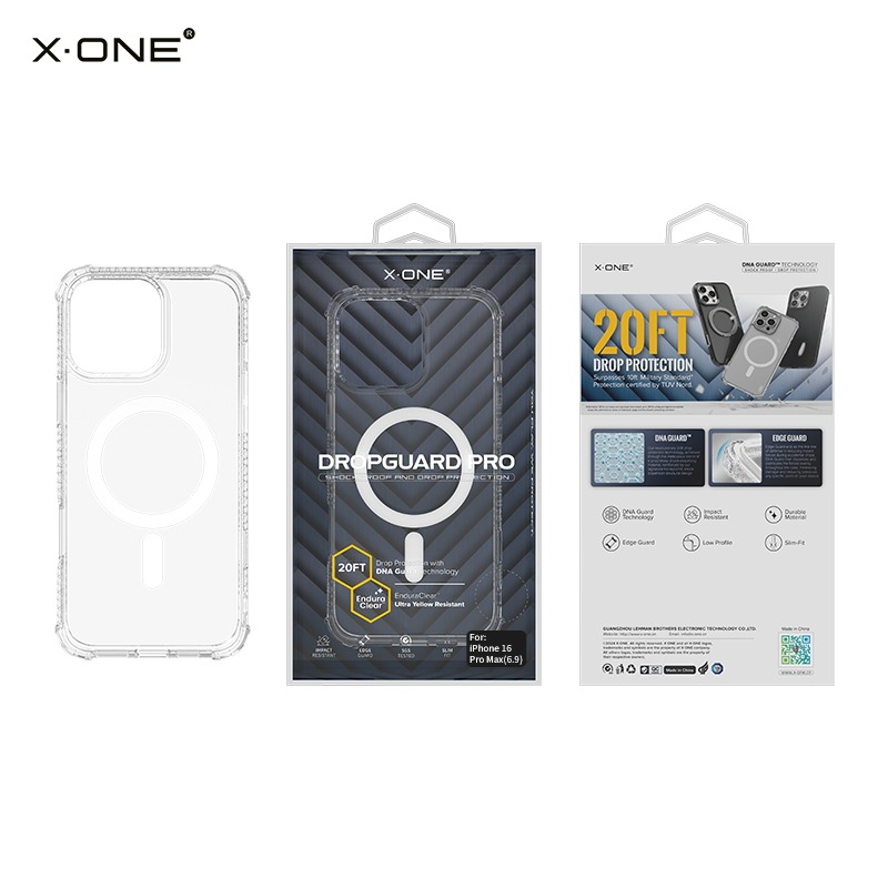 自营品牌补贴X-ONE Magnetic Clear Phone Case for iPhone Pro - Ultra-Thin Transparent Cover with MagSafe Compatibility, Anti-Yellowing & Shockproof Protection (Compatible with iPhone 14/15 Pro)机壳pro磁吸透明壳iPhone 16 / iPhone 16 Pro / iPhone 16 Plus / iPhone 16 Pro Max,推出 X.One 防摔卫士 Pro,它融合了先进的防护性能与轻薄设计。该手机壳采用 DNA Guard™技术打造,可承受高达 20 英尺的跌落冲击,且通过了 TÜV 和 SGS 的严格测试与认证。其轻薄的外形,确保不会给您带来厚重感。得益于 EnduraClear™技术,具备超强的抗黄变性能,能让您的手机壳长时间保持通透。