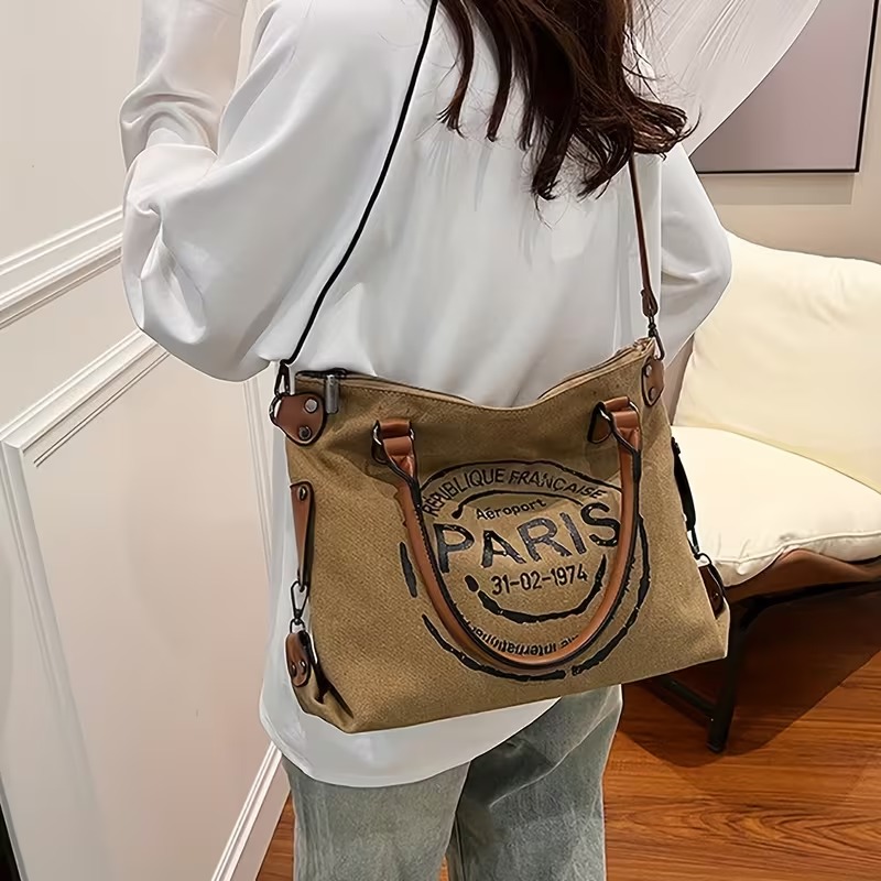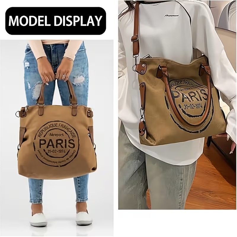 首页> 全部类目> 斜挎包和肩包> Khaki Parisian Tote Bag: Large Capacity, Lightweight & Durable, Minimalist & Versatile for All Styles, Practical & Stylish for Commuting, Shopping & Travel