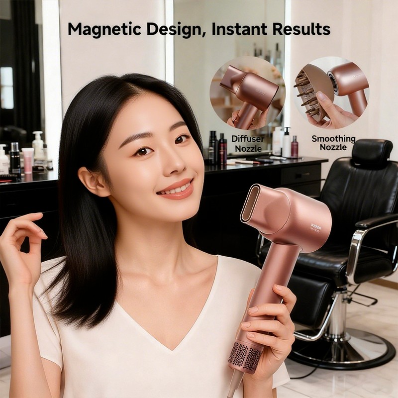 360° Magnetic Nozzle: Rotates freely for flexible styling and quick attachment changes.