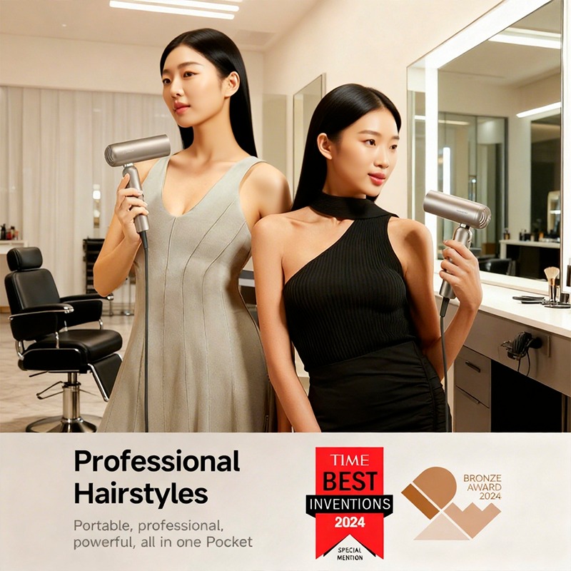 DREAME Pocket Pure High-Speed Hair DryerPocket Pure吹风机,重量仅为0.66磅,有3个节省空间的可折叠形式,它可以毫不费力地放入你的包中,用于家庭,健身房或旅行。由110,000转/分钟的马达和70米/秒的气流驱动,它在40秒内干燥短发-非常适合繁忙的早晨或锻炼后的日常工作。3亿个负离子使头发光滑卷曲,锁住水分,使头发光滑健康。它有6层隔音,运行在60分贝以下,非常适合共用空间。其NTC热敏电阻和智能芯片监测温度300x/秒,保持气流低于134.6°F,以防止热损坏。