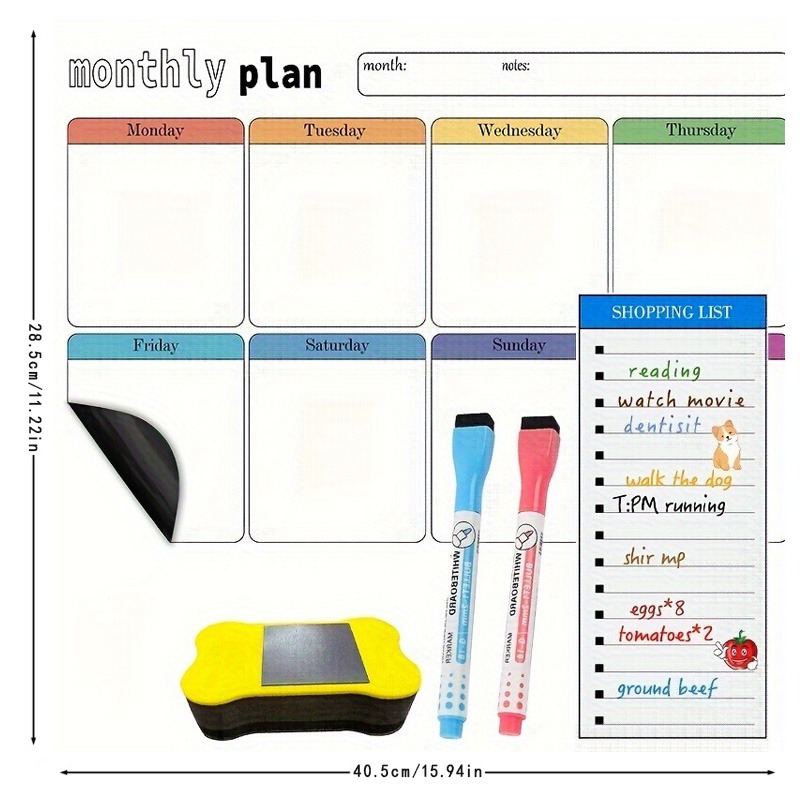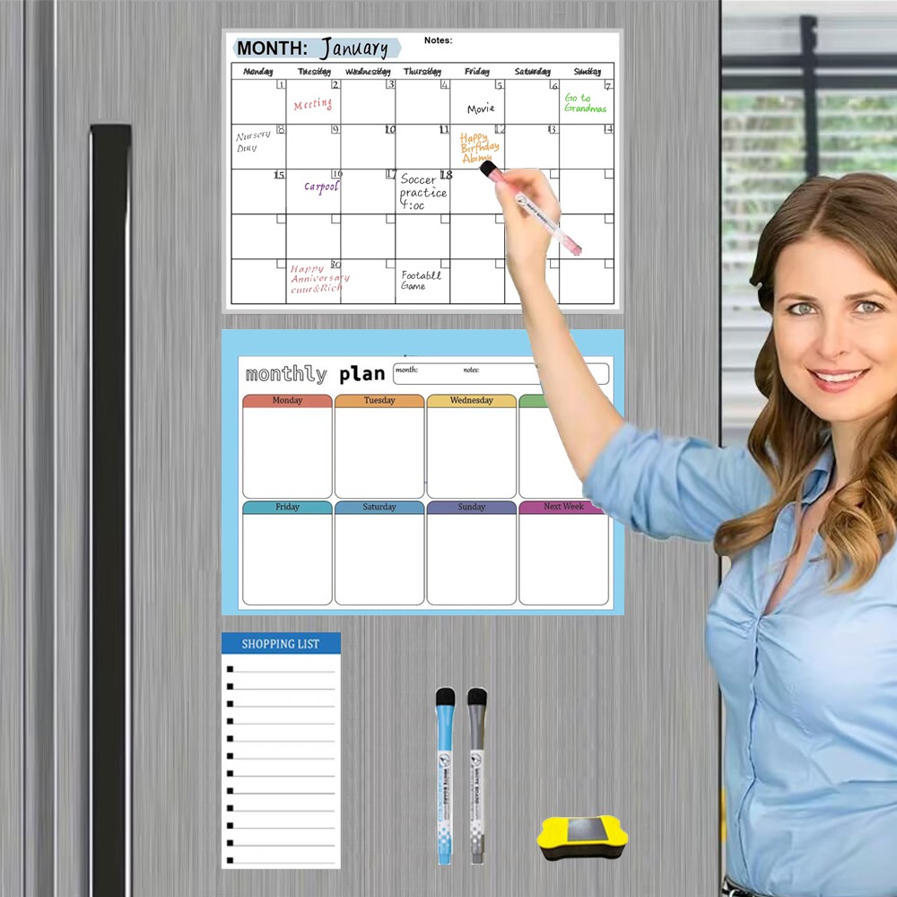 自营补贴Magnetic Dry Erase Board for Refrigerator - Reusable Kitchen Message Board with Strong Magnet, Easy to Clean for Grocery Lists, Reminders & Family磁吸冰箱留言板,易擦除可反复用,磁吸强,打造温馨家居一角。