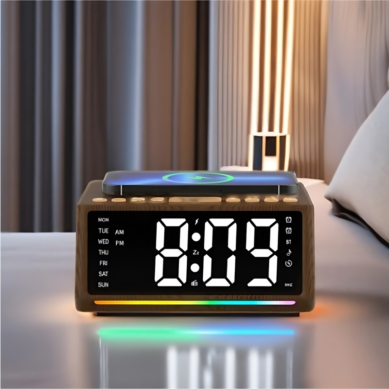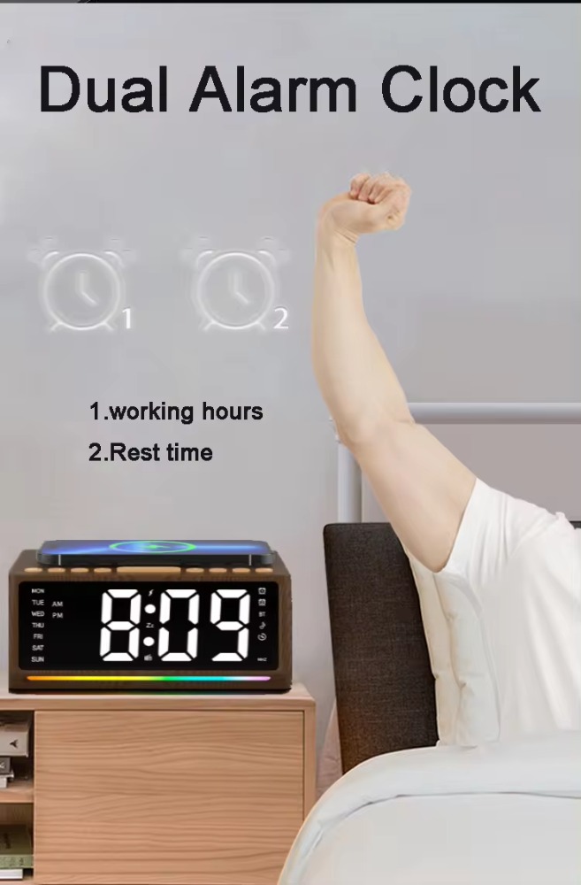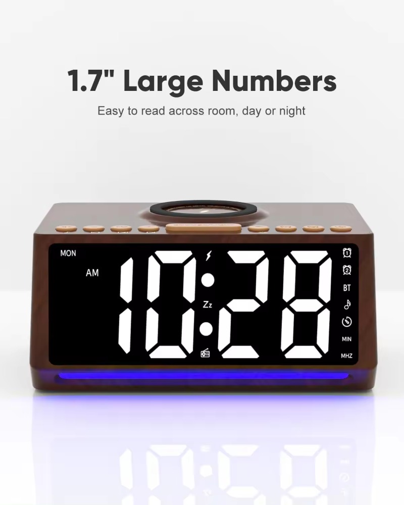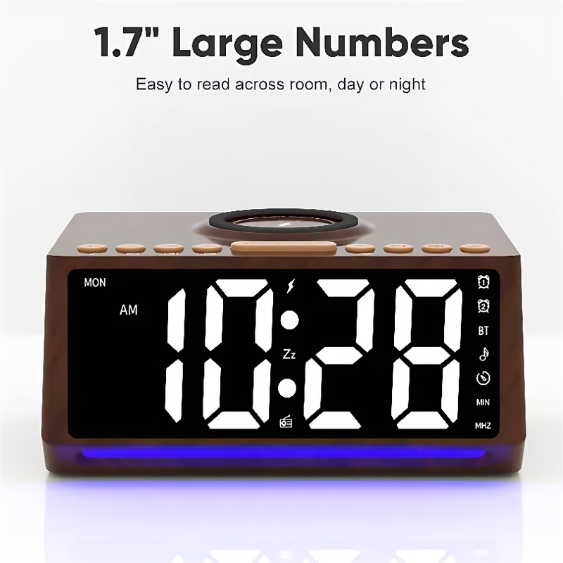 首页> 全部类目> 时钟> 10W Wireless Charger LED Alarm Clock with FM Radio Bluetooth Speaker Fast Charging Multi Functional