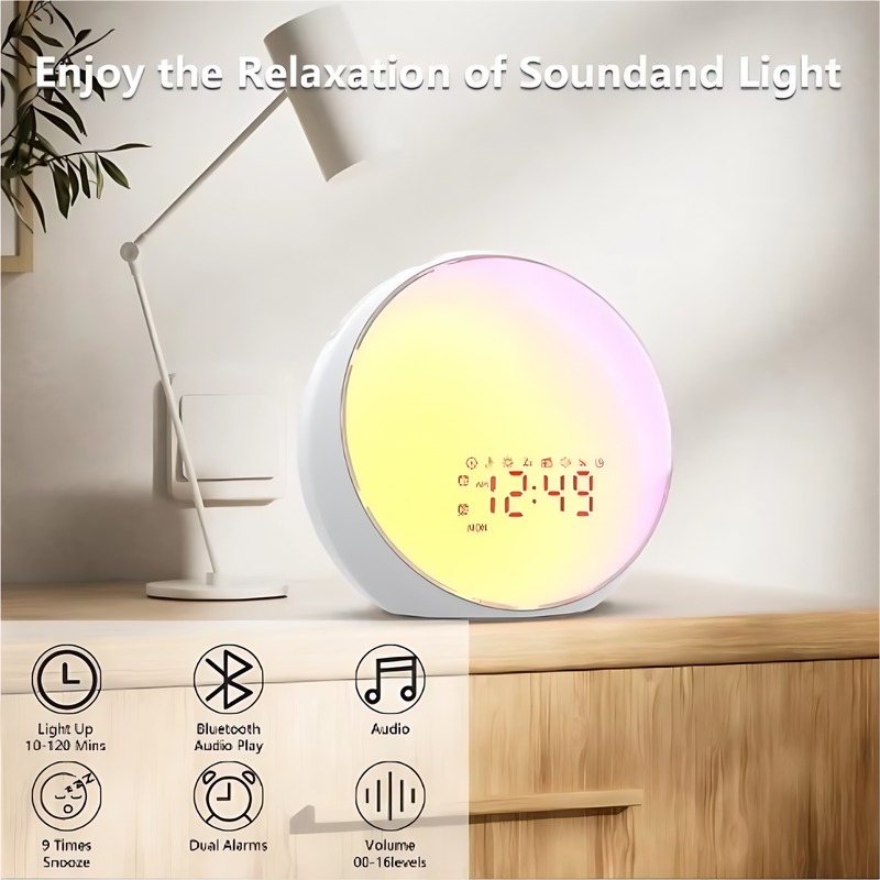 首页> 全部类目> 时钟> Sunrise Simulation Alarm Clock - Wake-Up Light with Gradual Sunrise & Sunset, LED Night Light & Snooze Function