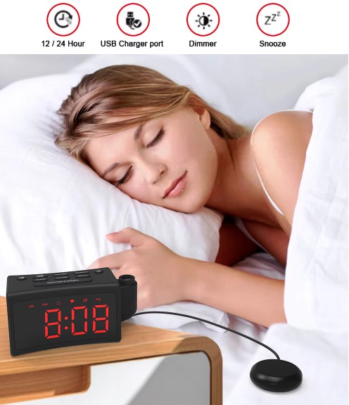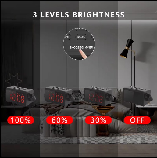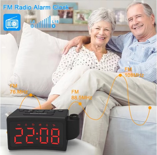 自营LED Digital Alarm Clock with Projection and FM Radio - Large Display for Bedroom Desktop卧室大闹钟,热销桌面卧室大闹钟带投影LED数字时钟显示器带FM收音机