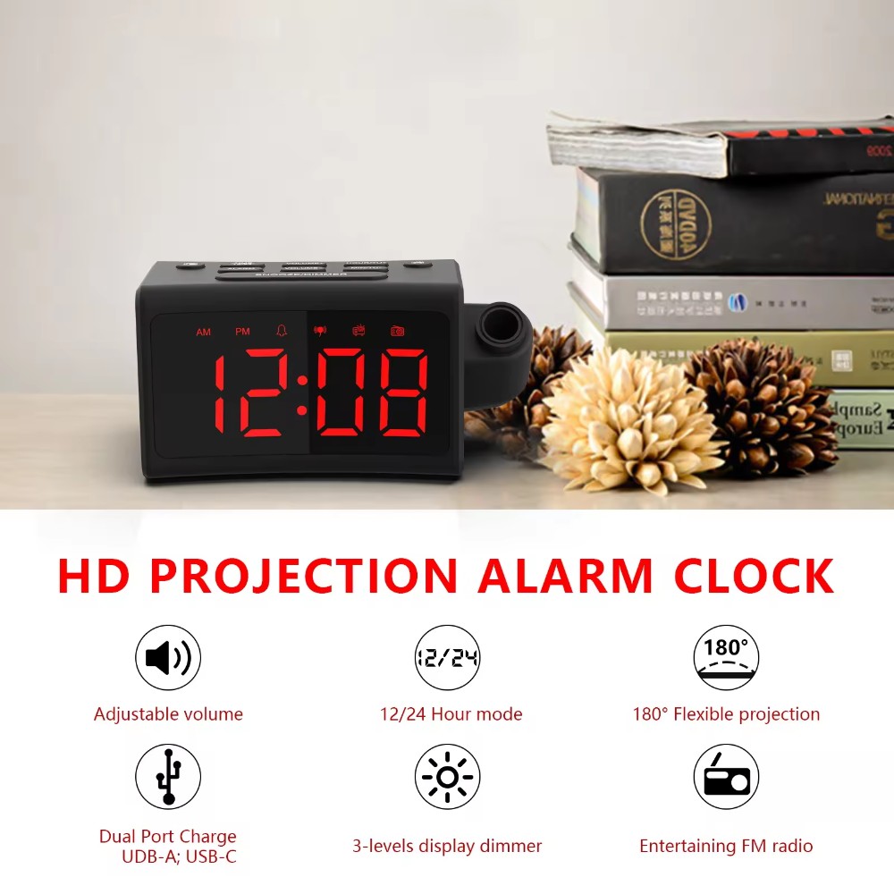 首页> 全部类目> 时钟> LED Digital Alarm Clock with Projection and FM Radio - Large Display for Bedroom Desktop