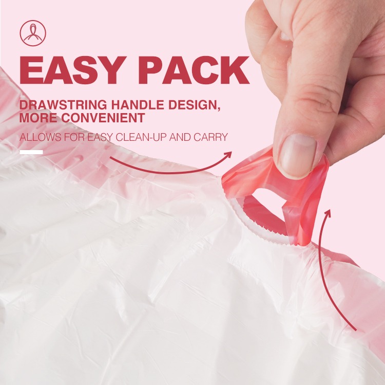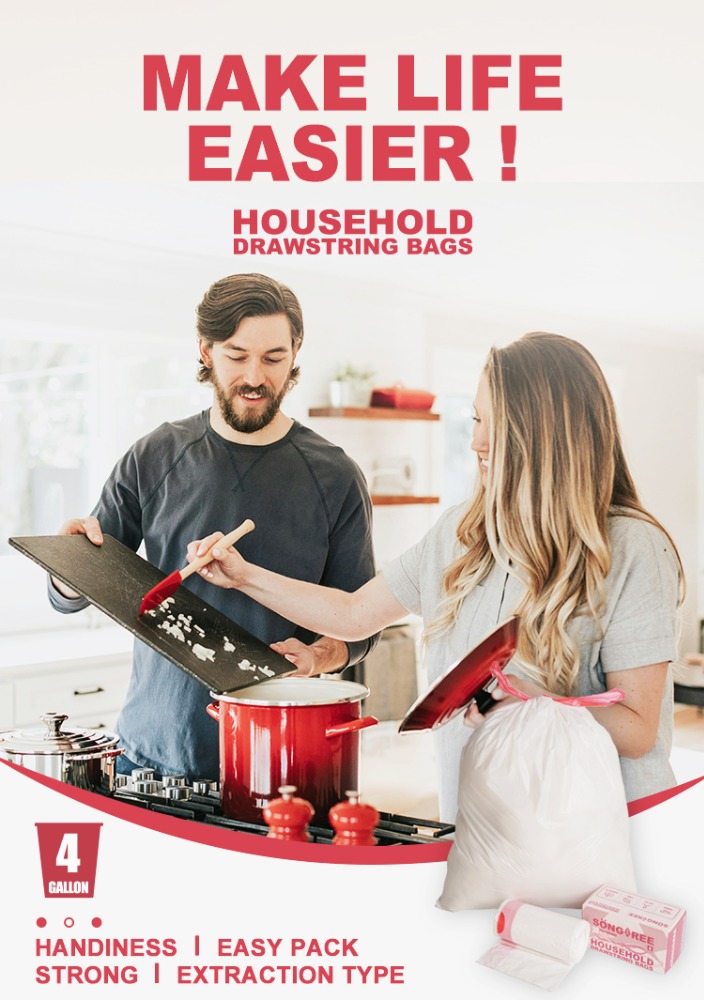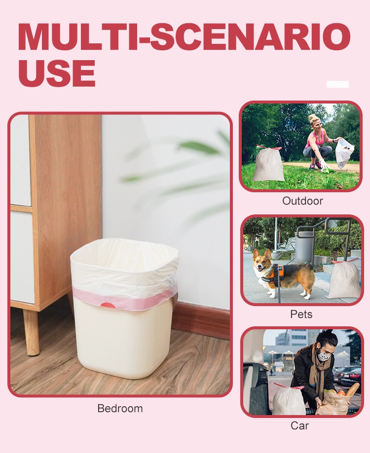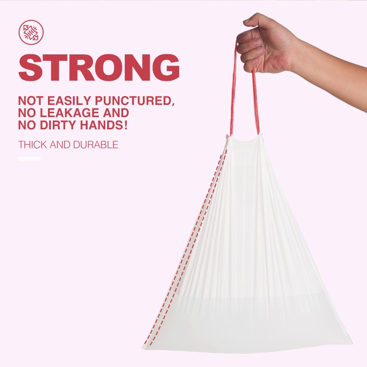 自营补贴Drawstring garbage bags, suitable for all scenarios. A great cleaning item for easy use. With simple drawstring closure to keep your hands clean. Thick, durable and of huge capacity. 抽绳式垃圾袋,抽绳垃圾袋,万能场景适配款,清洁好物随心用,简易收口不沾手,厚实耐用巨能容