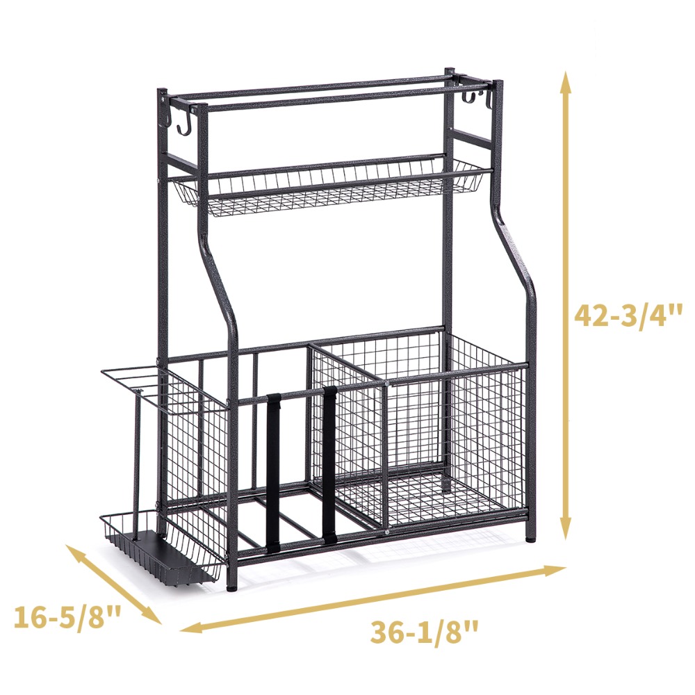 FULL PACKAGE INCLUDE - Sports Equipment Organizer Parts, Hex Wrench, User Manual and outstanding customer service. Overall dimensions: 36 L X 16.5 W X 42.75 H.