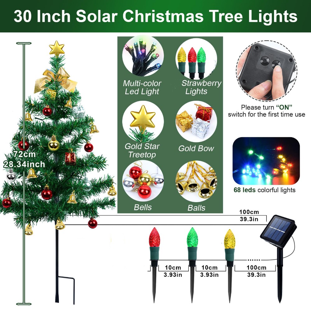 Solar Powered Christmas Tree Lights 100 LED Color Changing String Lights with Timer Waterproof Outdoor Solar Lights for Xmas Decorations太阳能圣诞树灯2个装,借助太阳能转化电能,以环保节能方式点亮圣诞树,呈现缤纷多彩光芒,营造浓郁圣诞欢乐氛围