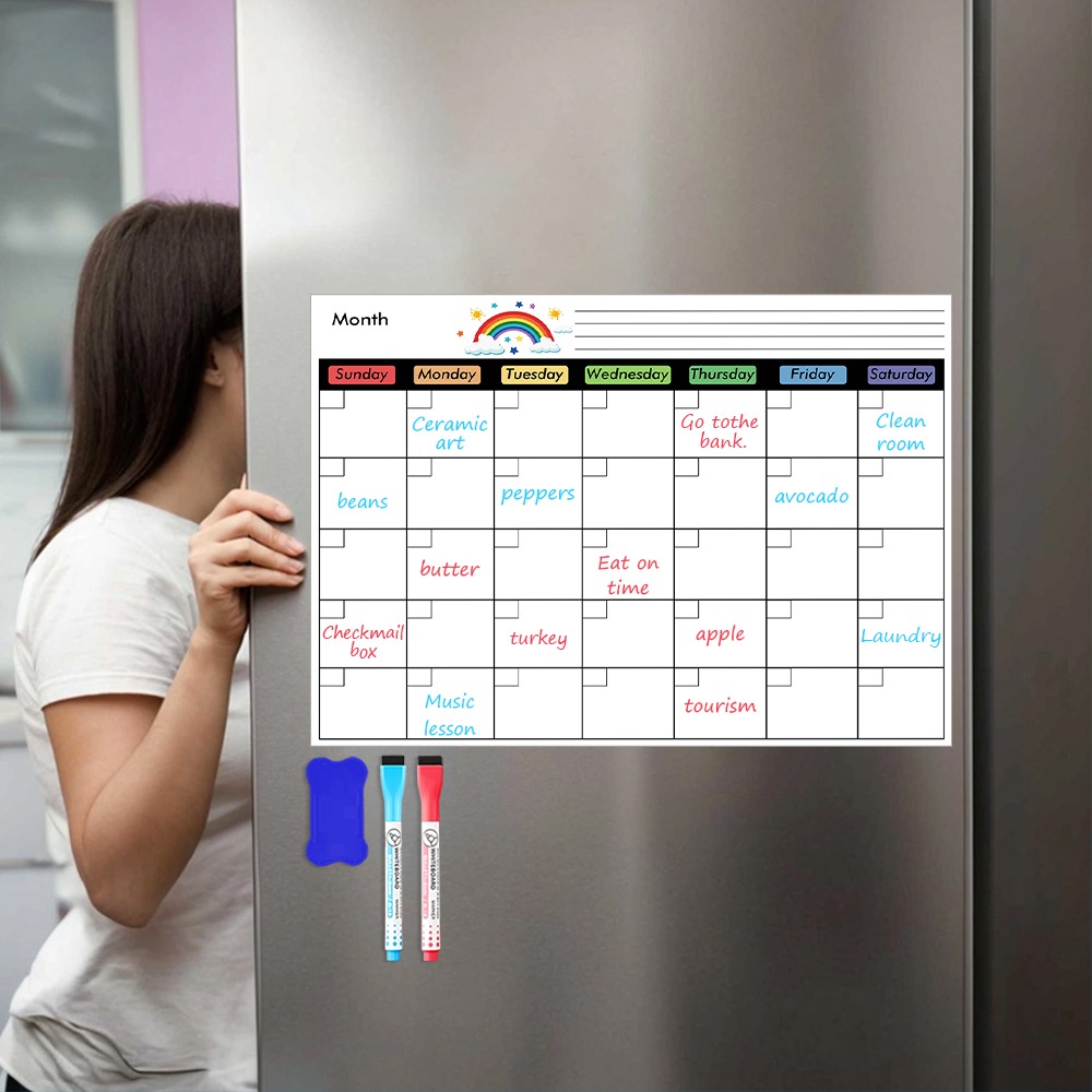首页> 全部类目> 冰箱磁铁日历> Magnetic Refrigerator Whiteboard - Reusable & Erasable Memo Board for Kitchen, Home Organization & Family Communication