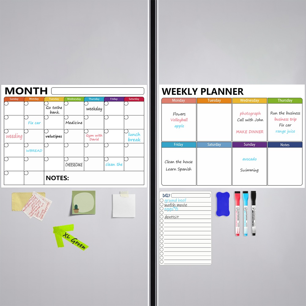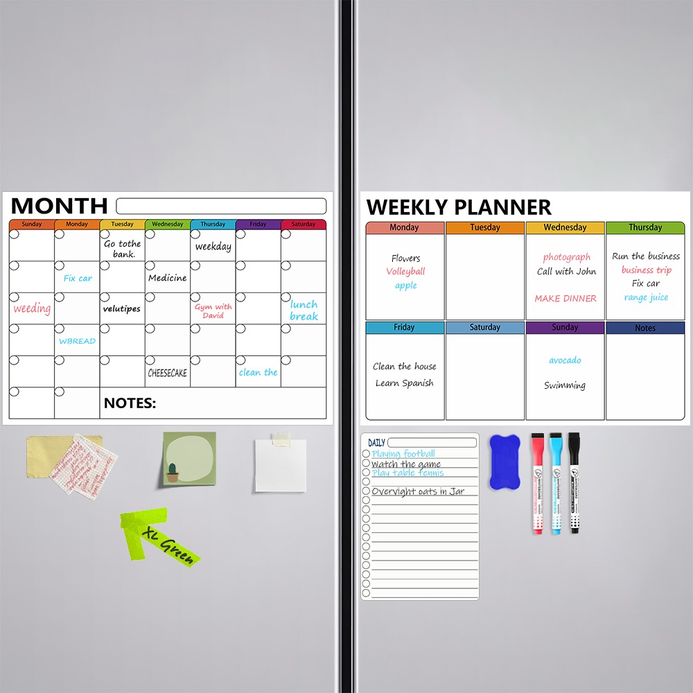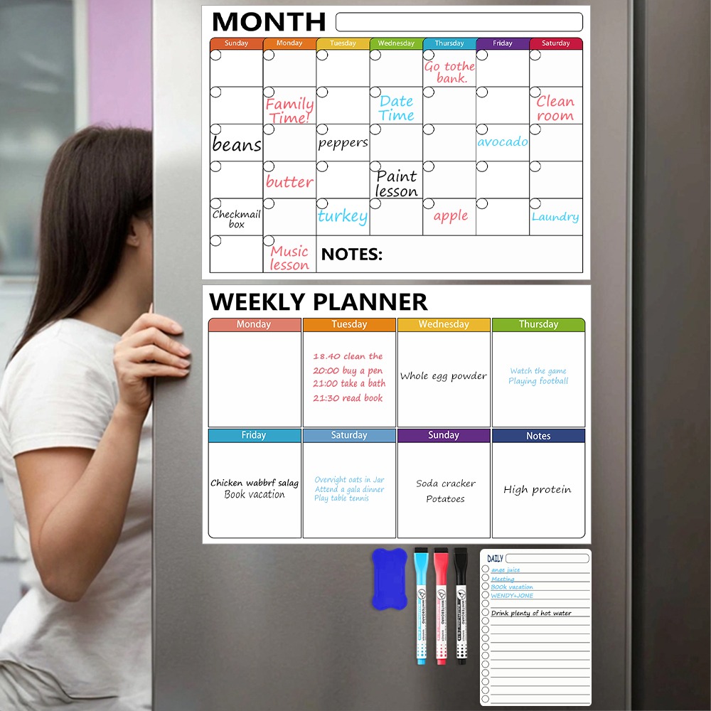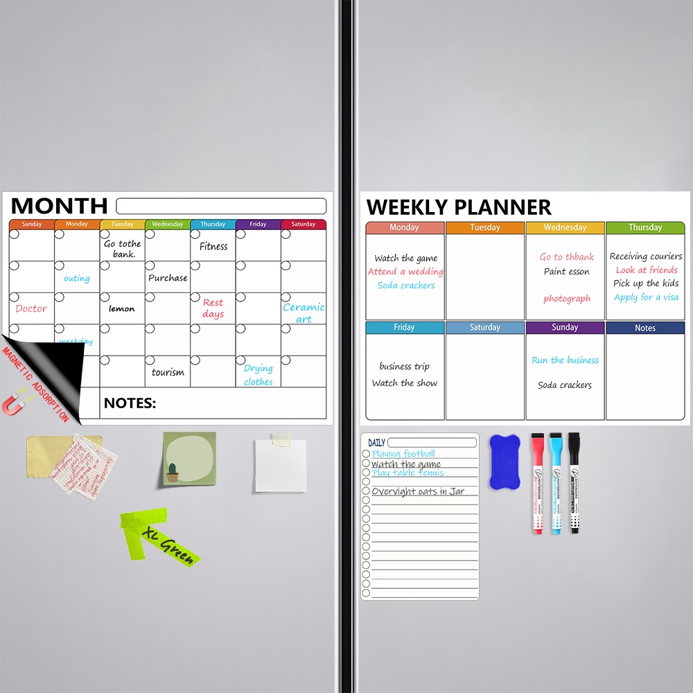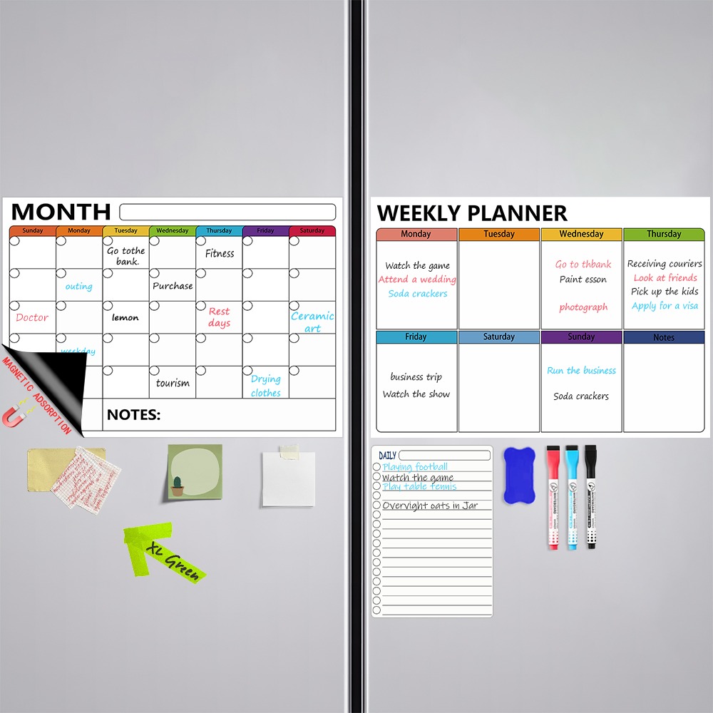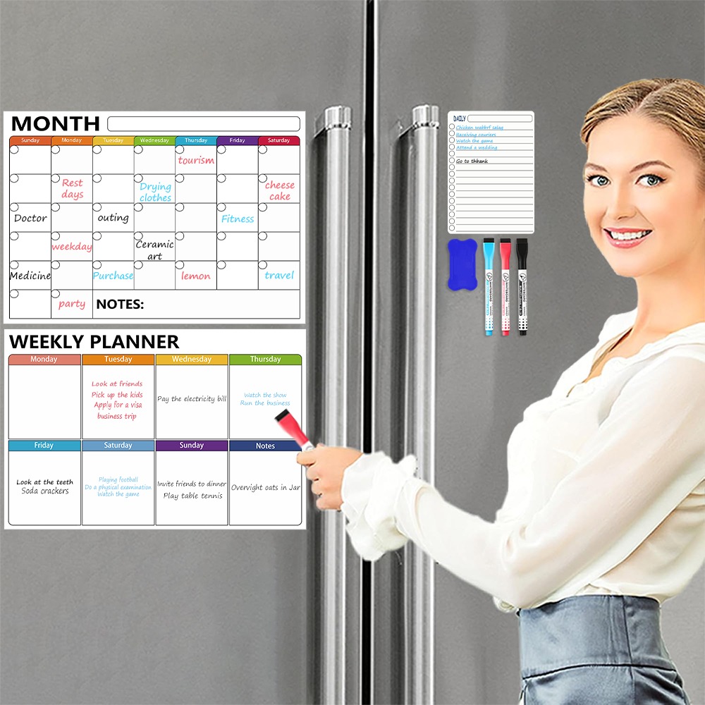 首页> 全部类目> 冰箱磁铁日历> Magnetic Refrigerator Message Board - Strong and stable magnetic adsorption, smooth dry-erase surface, essential for home and office organization (includes 3 markers and an eraser)