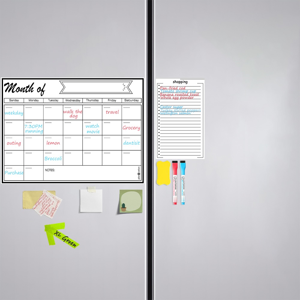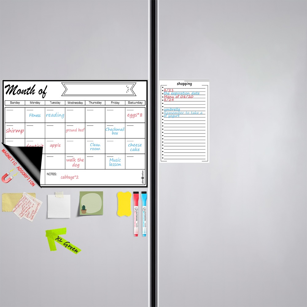 首页> 全部类目> 冰箱磁铁日历> Magnetic fridge message board, with creative partition for note-taking, made of waterproof and durable materials, a magic tool for communication in the kitchen.