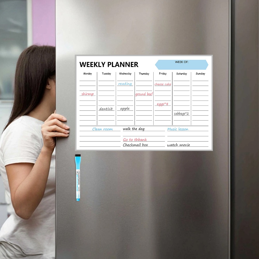 首页> 全部类目> 冰箱磁铁日历> Magnetic Refrigerator Memo Board with Accessories - Creative Organizer for Kitchen Notes, Grocery Lists & Reminders (Includes 6 Magnetic Stickers & Dry Erase Marker)