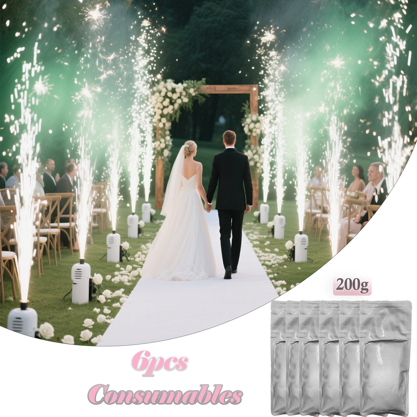 自营Cold Spark Machine Powder - 6pcs x 200g/Pack | 5m Spark Height | Non-Toxic & Smokeless for Weddings & Stage Shows冷烟火粉末 ——6 包 ×200 克 / 包 ,火花高度 5 米 | 无毒无烟,适用于婚礼及舞台演出