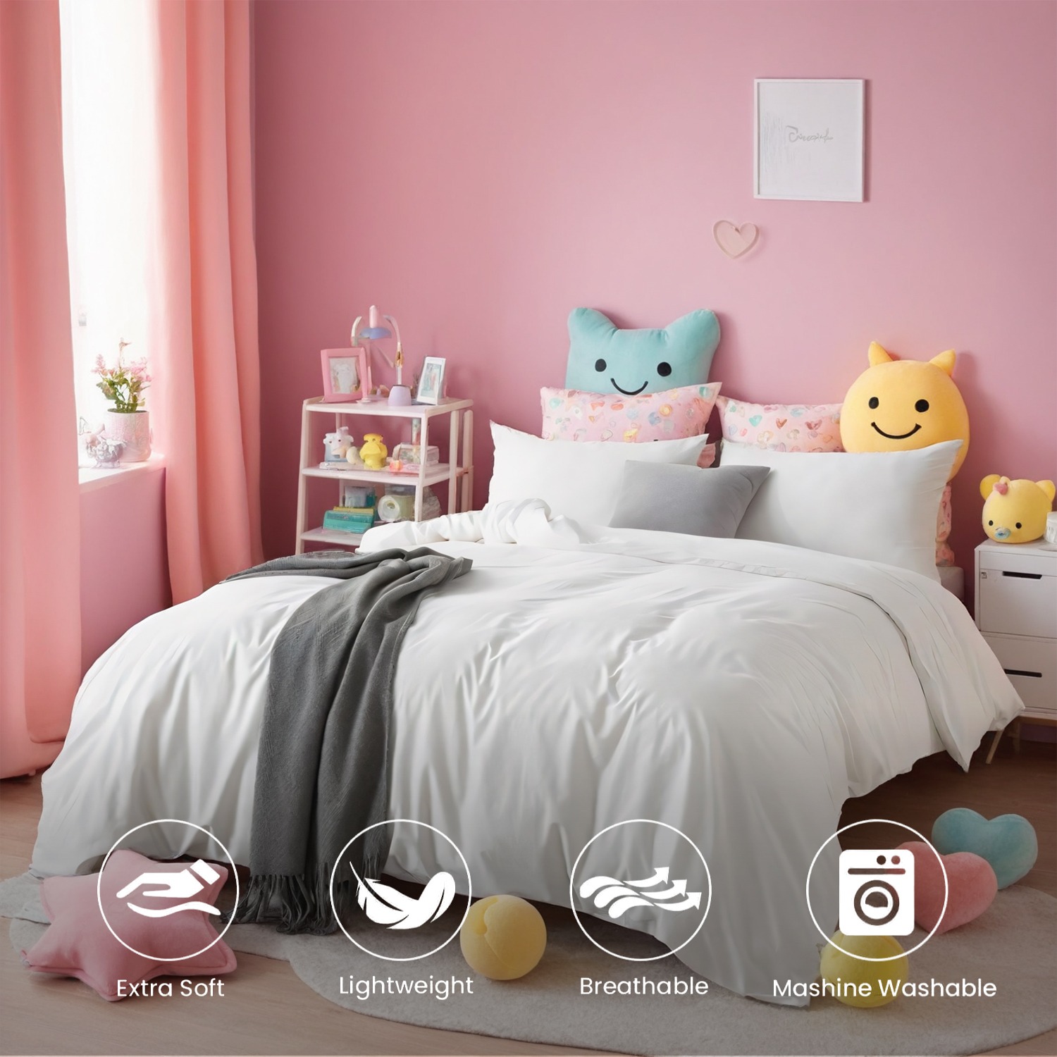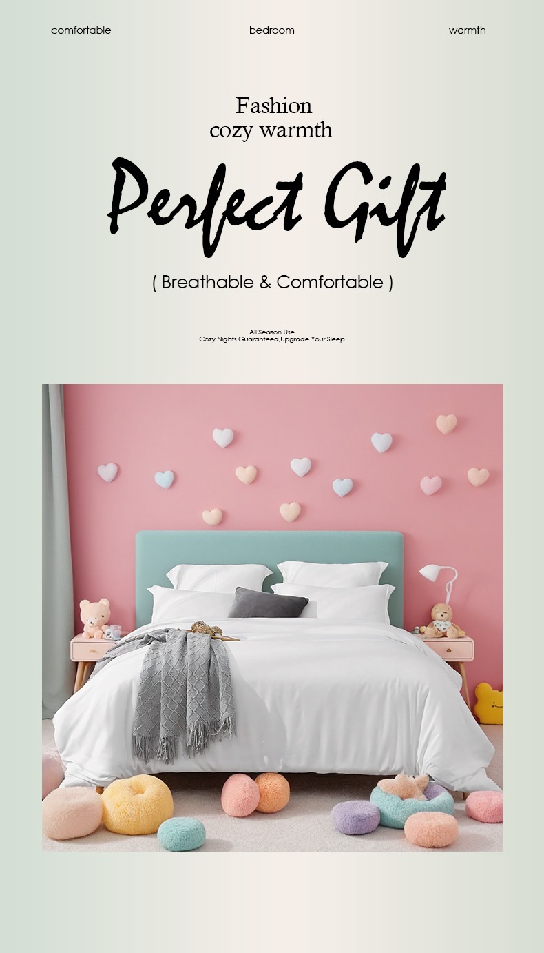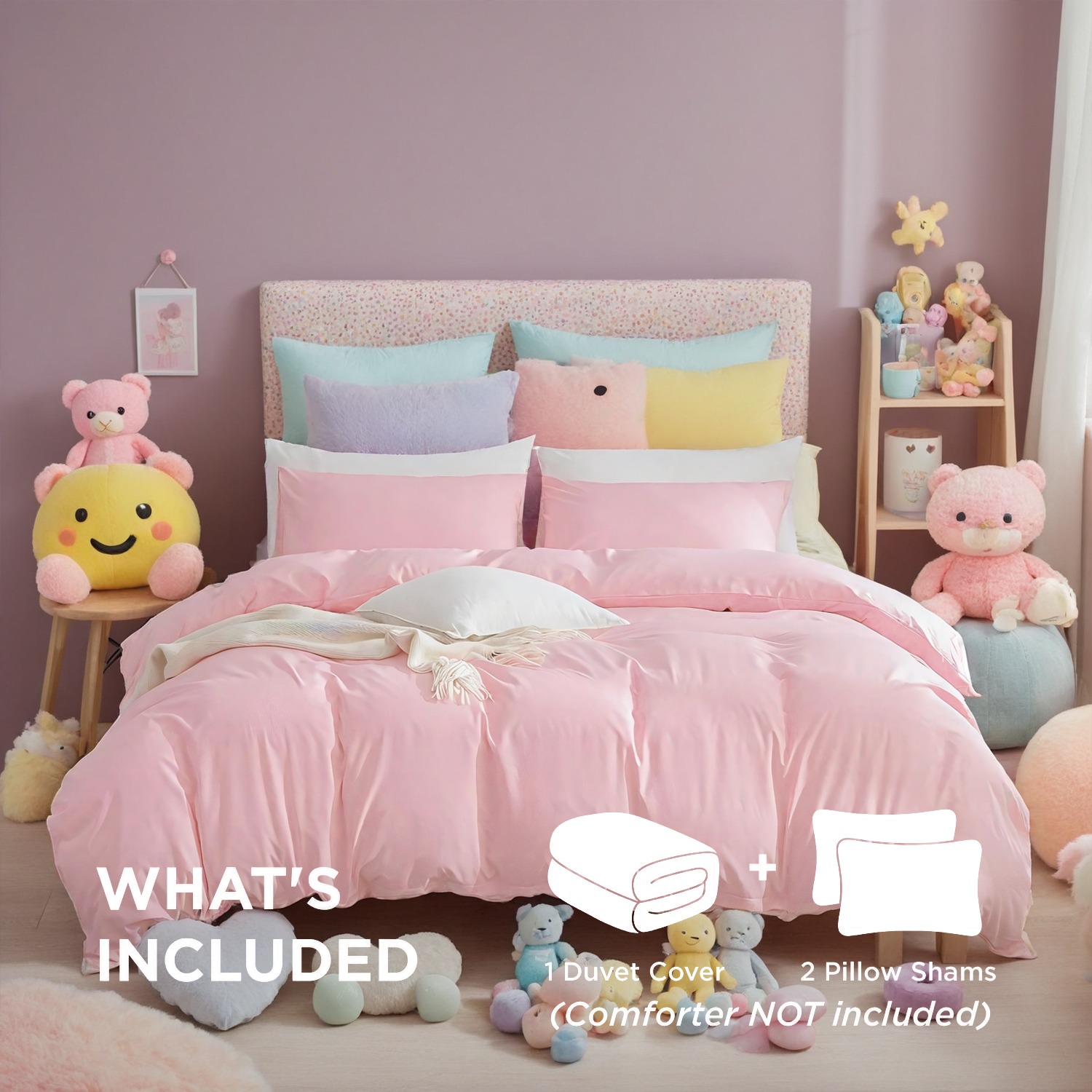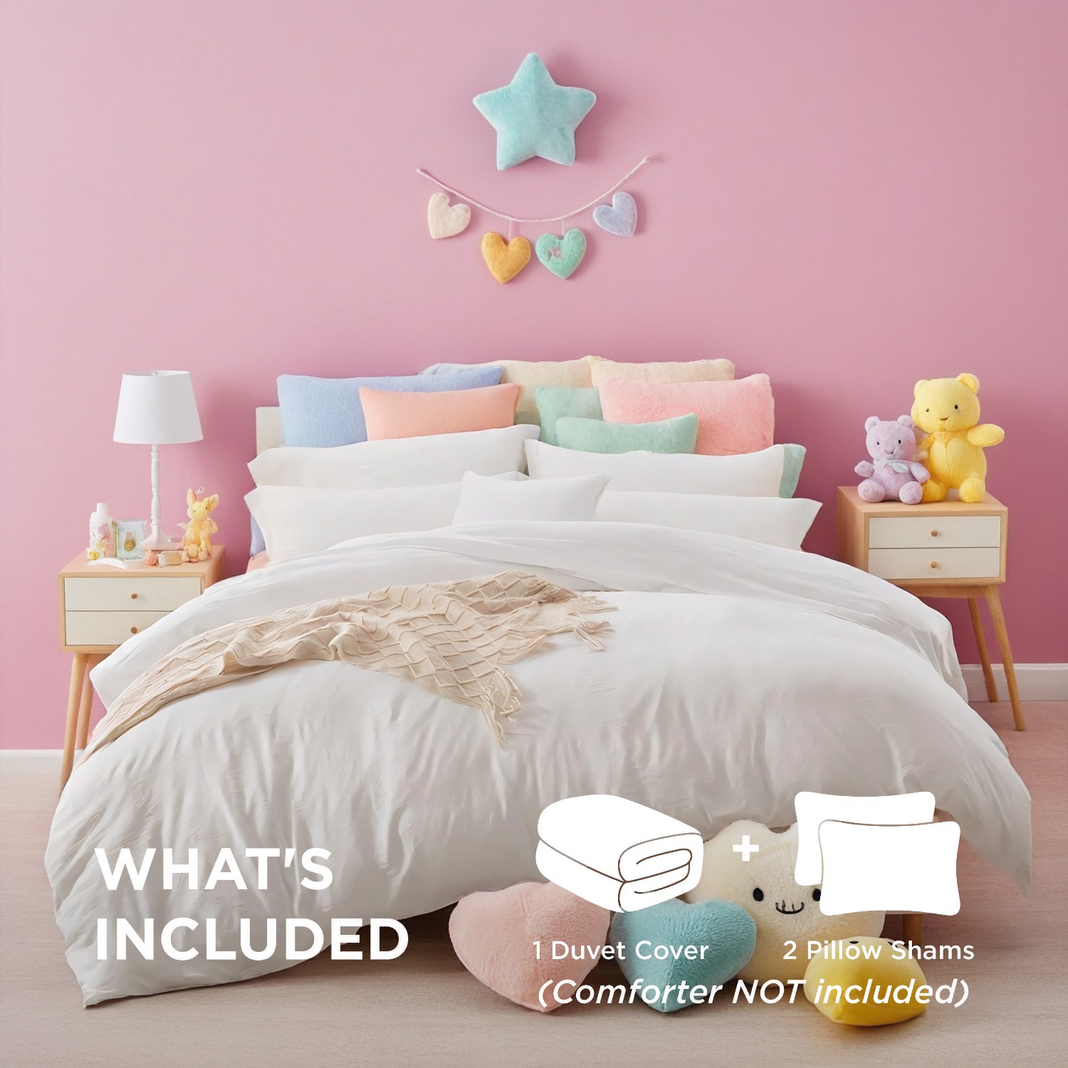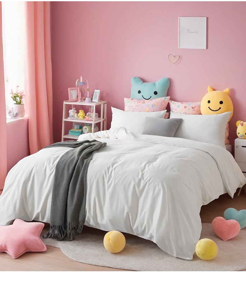 White and Pink Duvet Cover Set for Girls. This adorable, fairy-tale style set includes a duvet cover and two pillowcases, bringing a fresh vibe to any bedroom or dorm. Enjoy cozy, easy-care comfort with this perfect Christmas present!白粉被套套装,包含一只被套两只枕套,可爱女生仙女小清新款式卧室宿舍被套,舒适柔软可机洗,圣诞节礼物