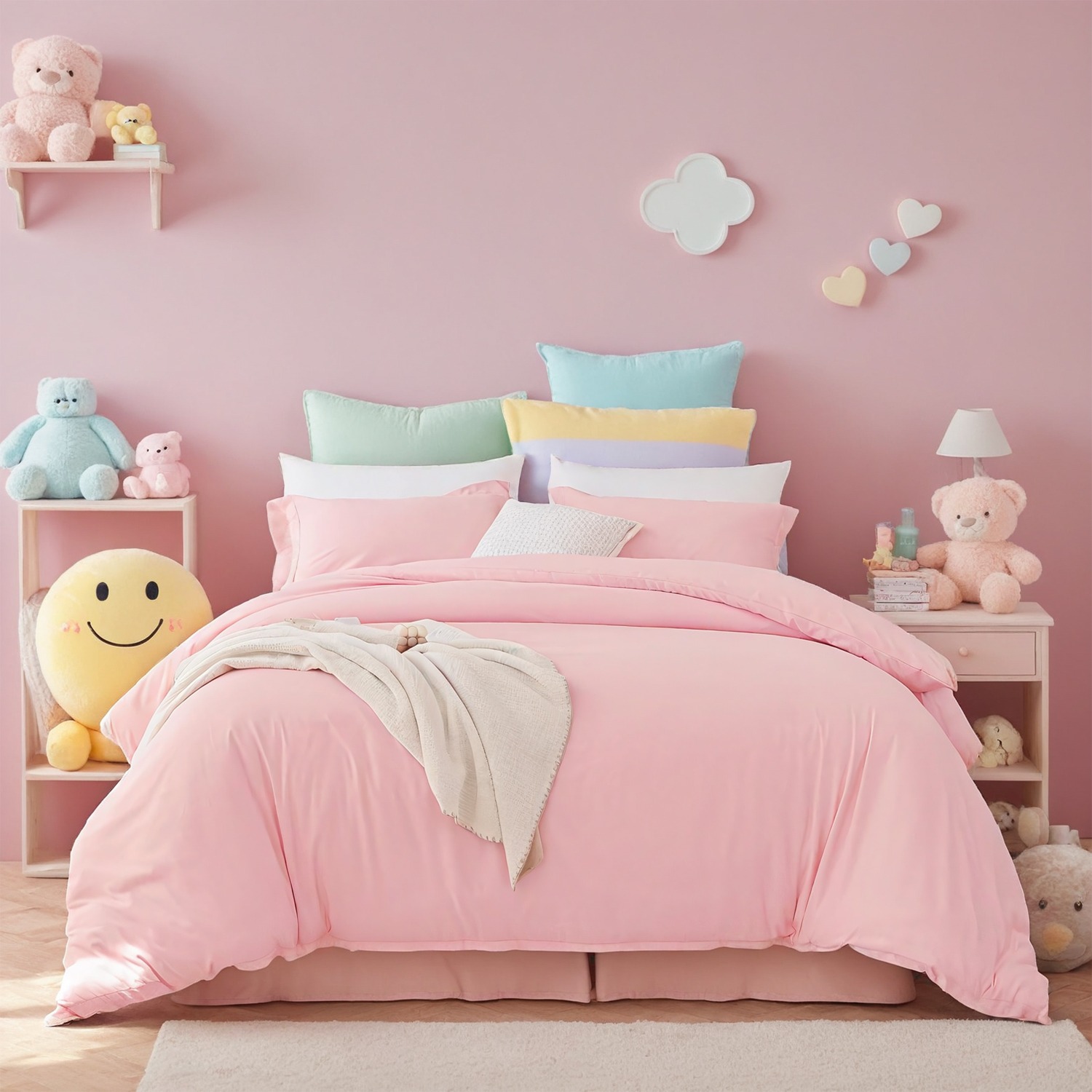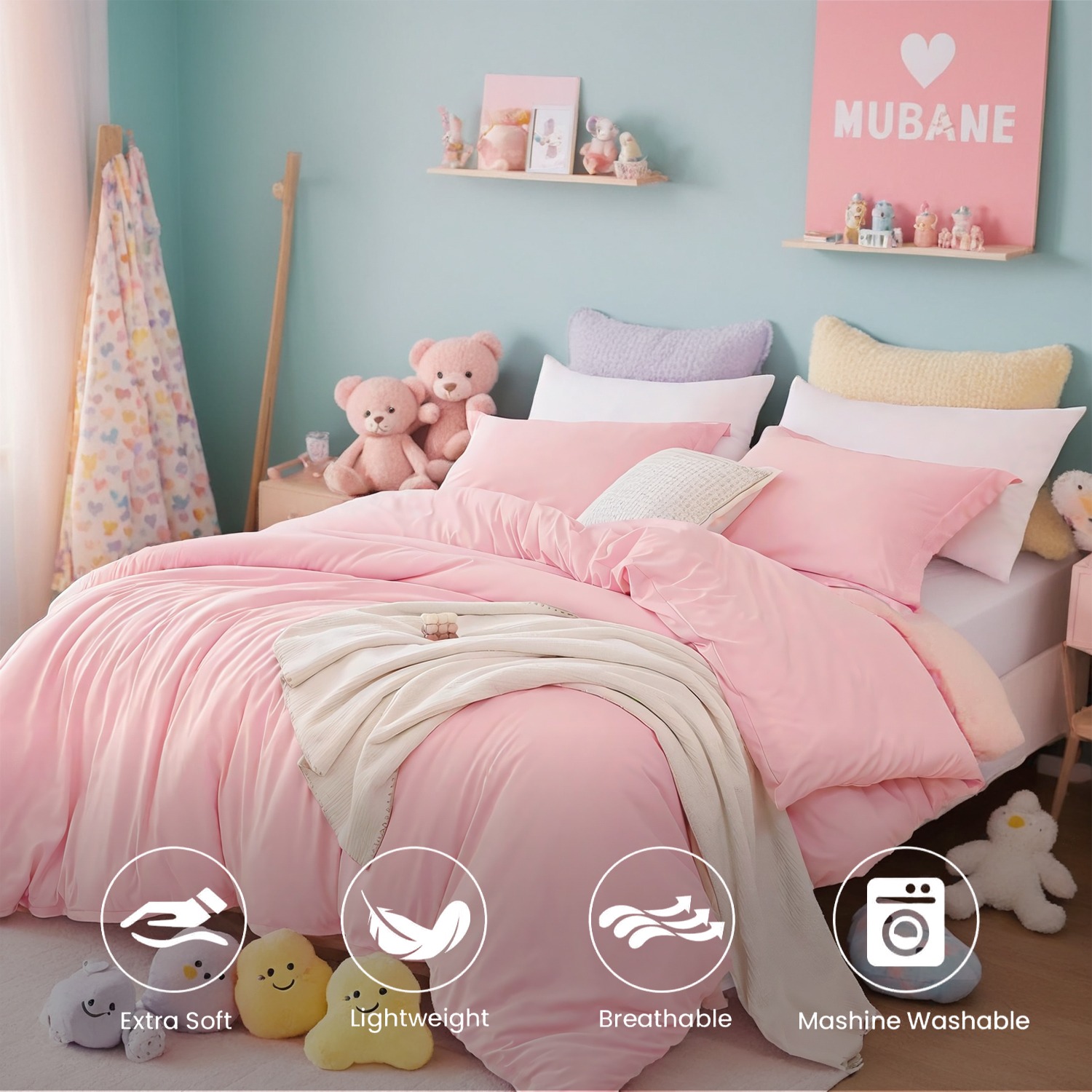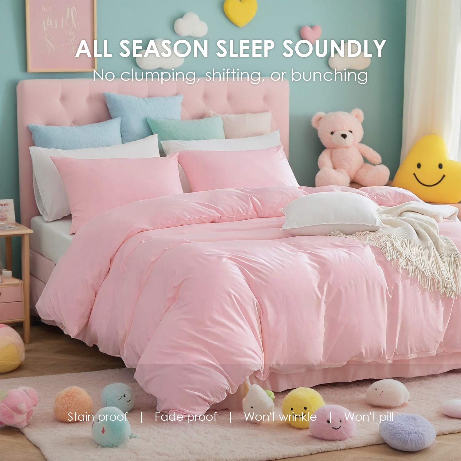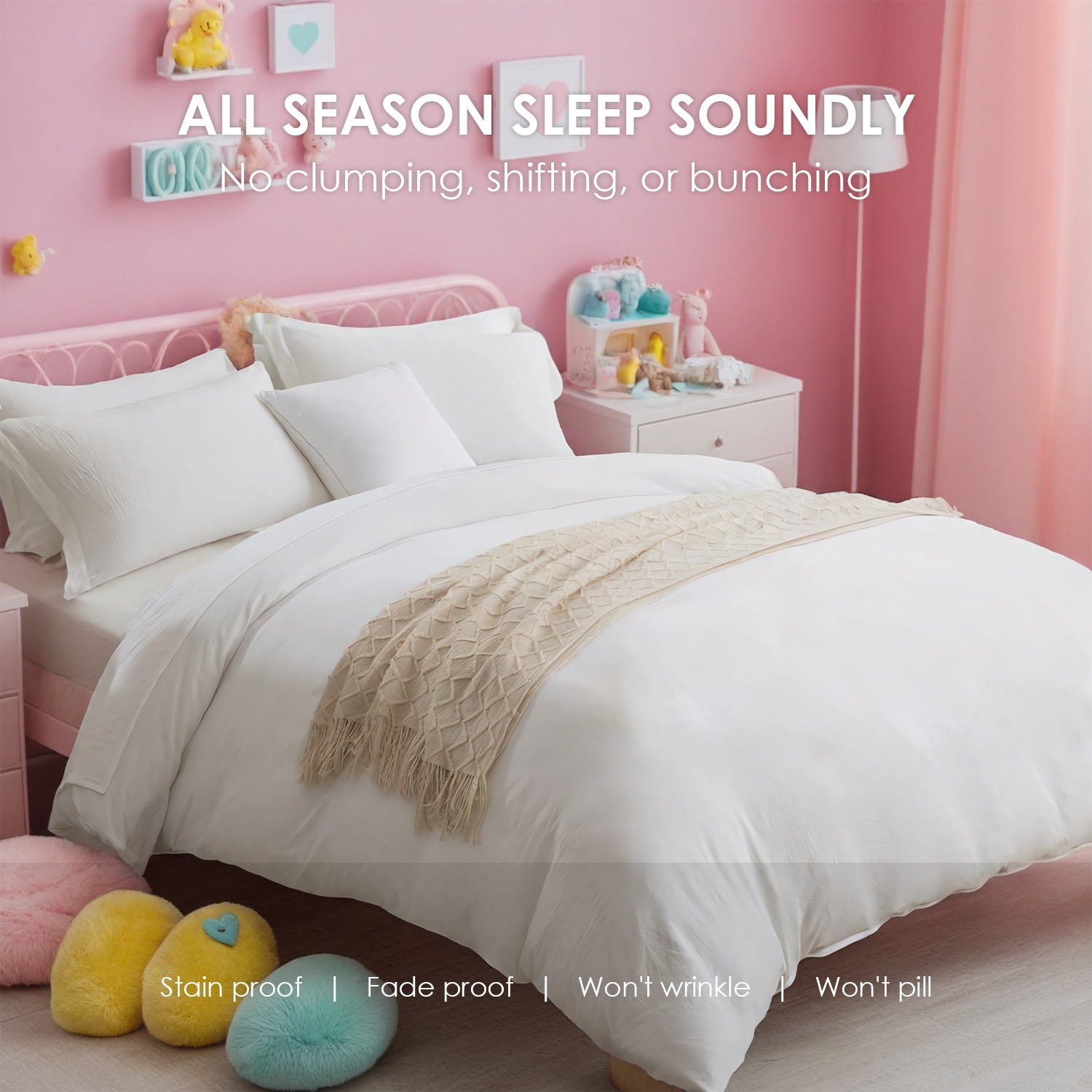 White and Pink Duvet Cover Set for Girls. This adorable, fairy-tale style set includes a duvet cover and two pillowcases, bringing a fresh vibe to any bedroom or dorm. Enjoy cozy, easy-care comfort with this perfect Christmas present!白粉被套套装,包含一只被套两只枕套,可爱女生仙女小清新款式卧室宿舍被套,舒适柔软可机洗,圣诞节礼物