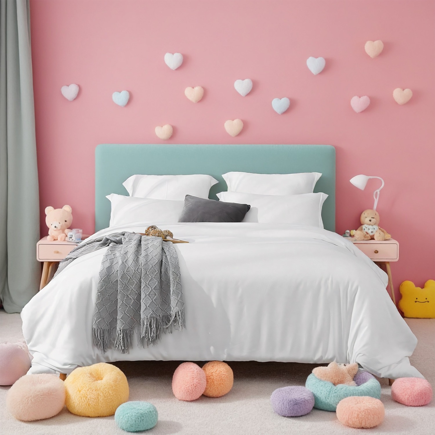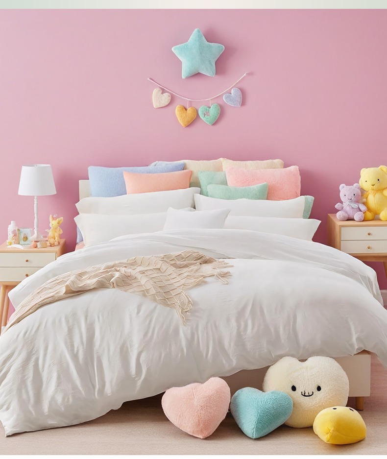 首页> 全部类目> 床上用品套装> White and Pink Duvet Cover Set for Girls. This adorable, fairy-tale style set includes a duvet cover and two pillowcases, bringing a fresh vibe to any bedroom or dorm. Enjoy cozy, easy-care comfort with this perfect Christmas present!