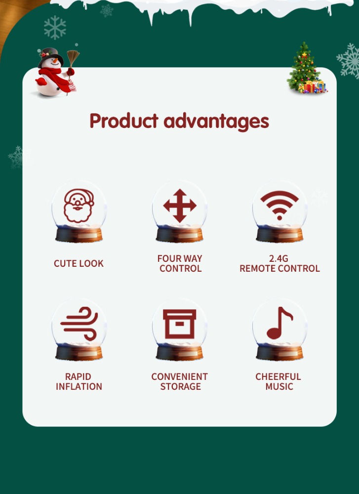 自营Remote Control Inflatable Santa Claus - Festive Holiday Decoration with Adorable Design遥控充气圣诞老人,智能操控便捷,造型憨态可掬,节日氛围轻松营造。