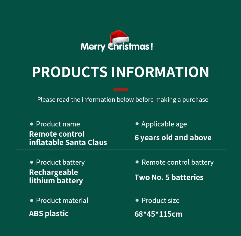 首页> 全部类目> 饰品装饰> Remote Control Inflatable Santa Claus - Festive Holiday Decoration with Adorable Design