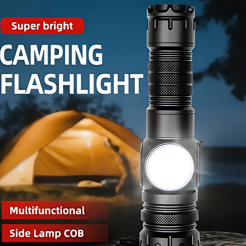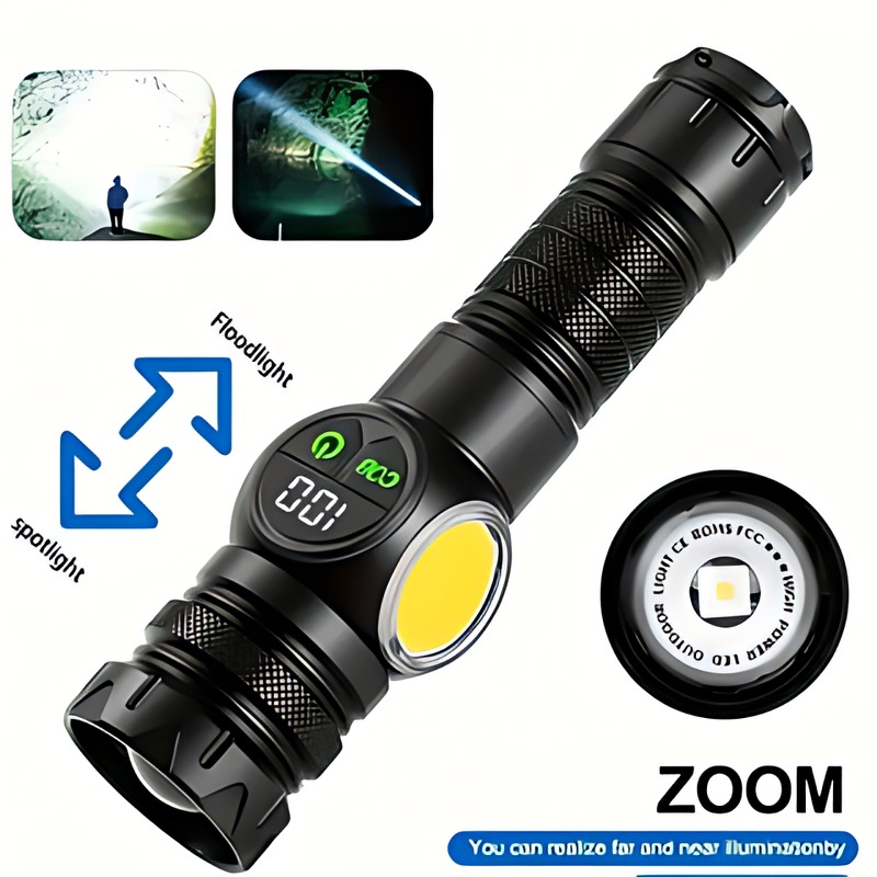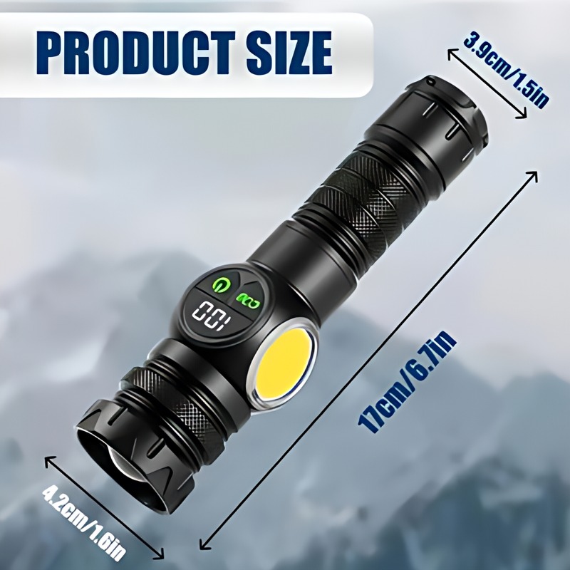 自营Rechargeable LED Flashlight with 9 Modes & Red COB Light - Digital Battery Display for Camping, Hunting, Fishing & Hiking | Waterproof & Durable Tactical DesignLED多功能充电手电筒,可充电 LED 手电筒(含 9 种模式及红色 COB 灯)—— 带数字电量显示,适用于露营、狩猎、钓鱼及徒步 | 防水耐用的战术设计