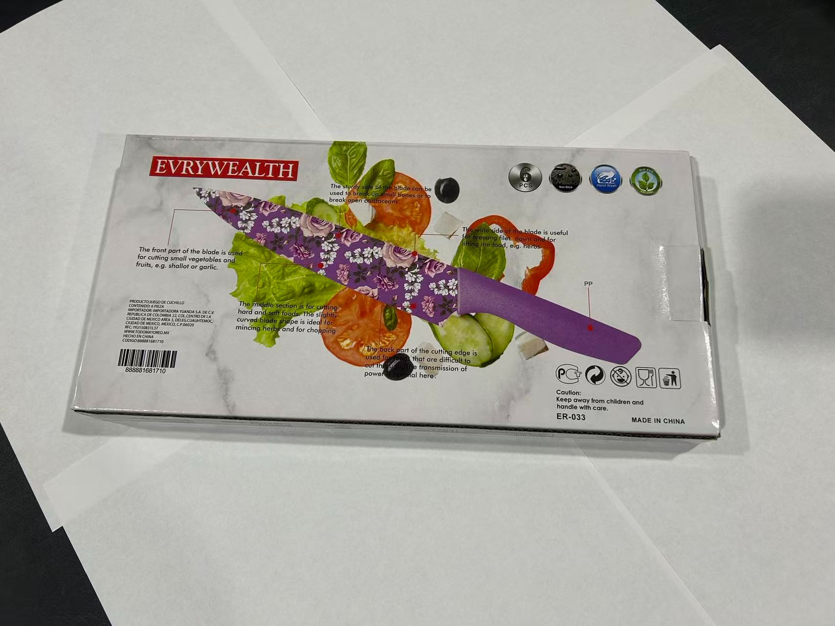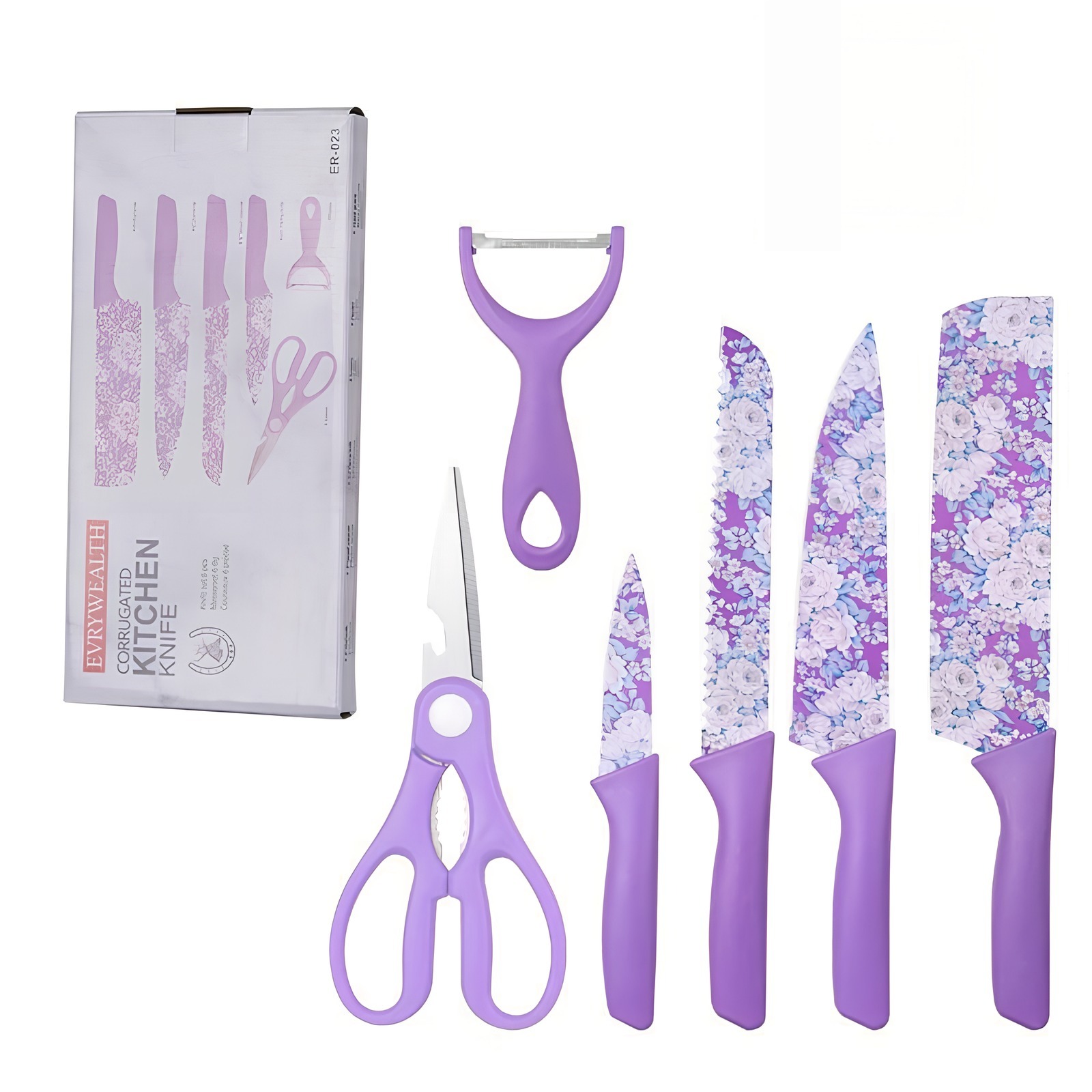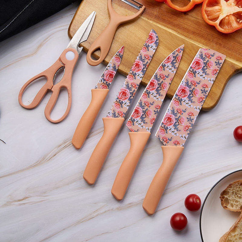 首页> 全部类目> 刀具> 6-Piece Stainless Steel Color-Printed Kitchen Knife Set, Household Kitchen Utility Knife Set