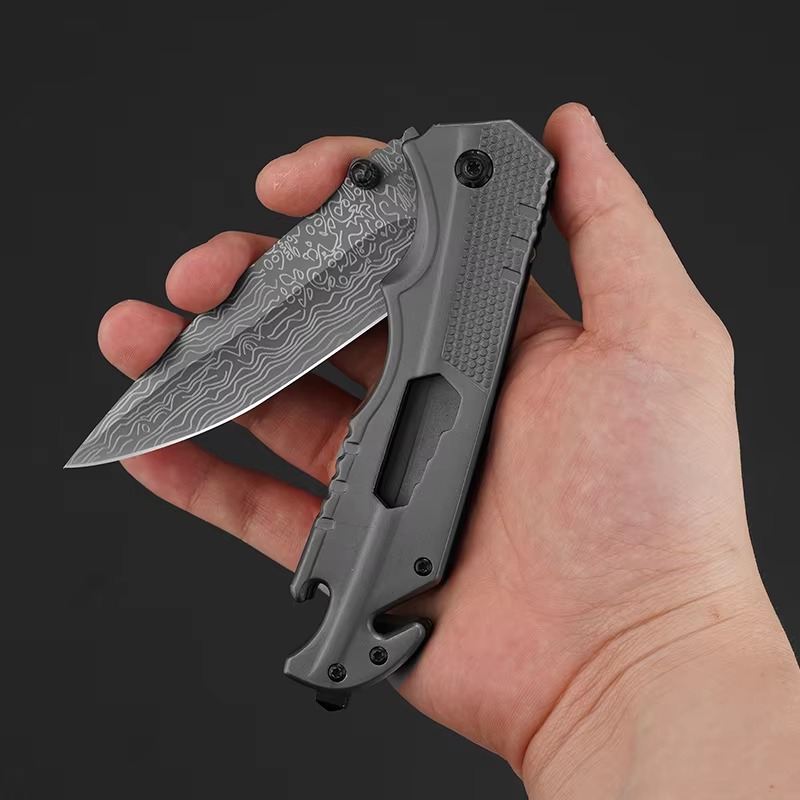 首页> 全部类目> 刀具> The Q9 Grey vein knife, with its sharp blade gleaming coldly, features unique grey veins that look extraordinary. It offers a comfortable grip and is a sharp tool for outdoor cutting tasks