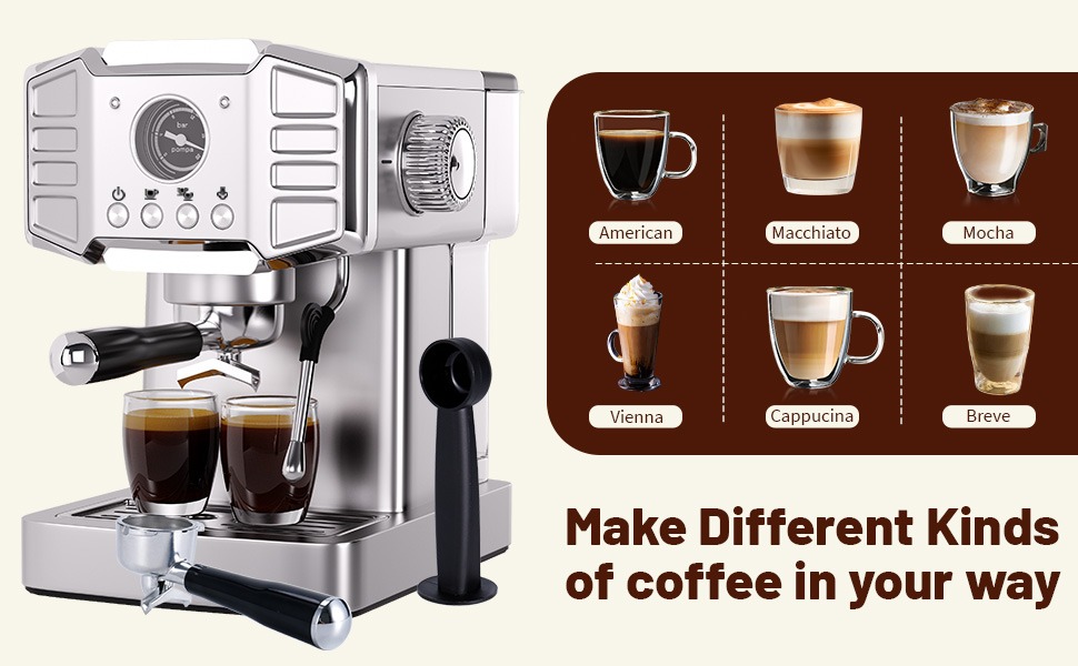 品牌Lusdvrot Espresso Machine with Milk Frother - 20 Bar Pressure, Stainless Steel, 1.8L Detachable Water Tank for Latte & Cappuccinolusdvrot 意式浓缩咖啡机,lusdvrot 意式浓缩咖啡机,带奶泡器的 20 巴意式浓缩咖啡机,用于制作拿铁、卡布奇诺的不锈钢意式浓缩咖啡机,1.8 升可拆卸水箱