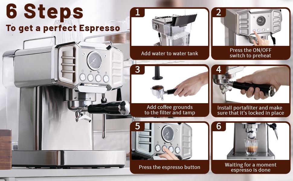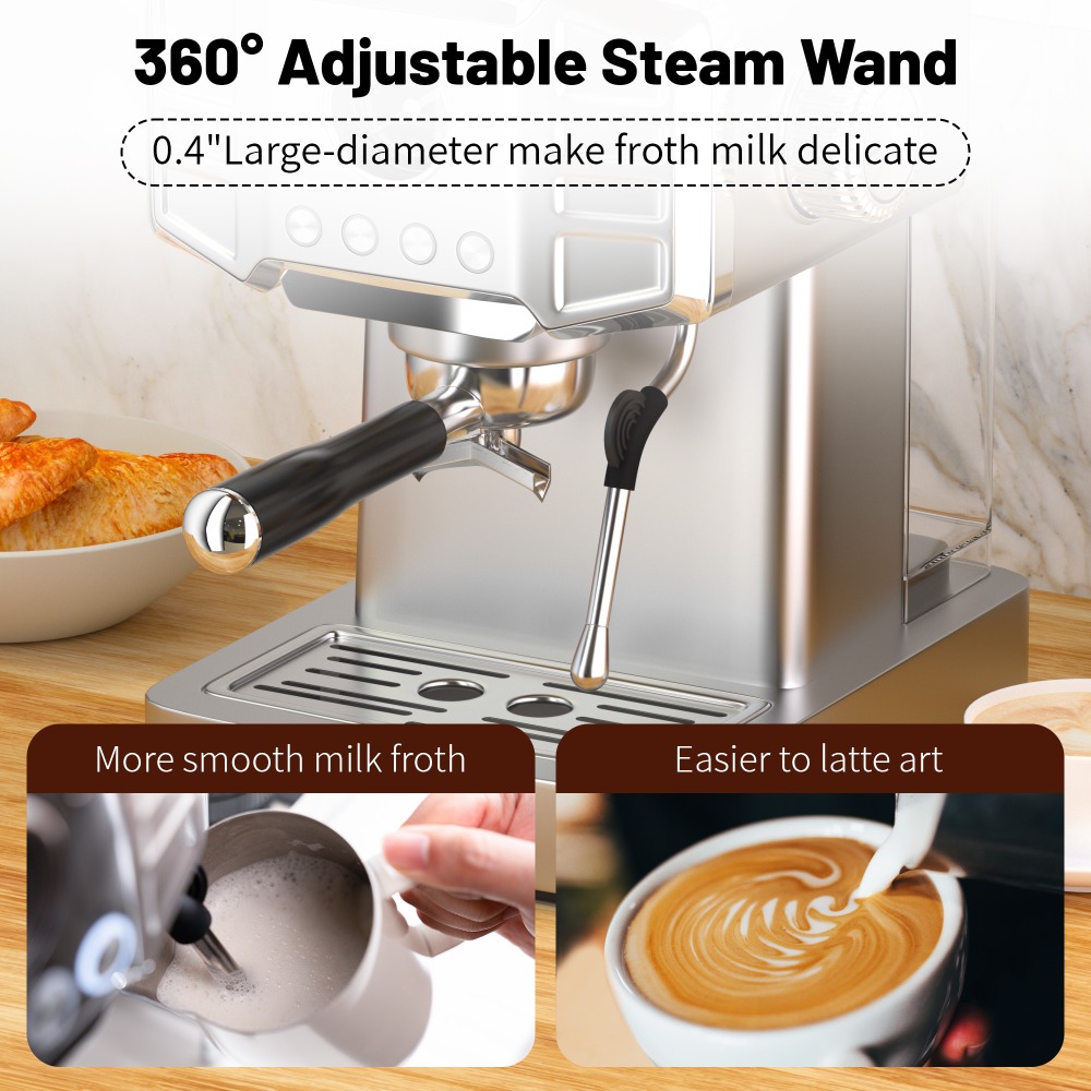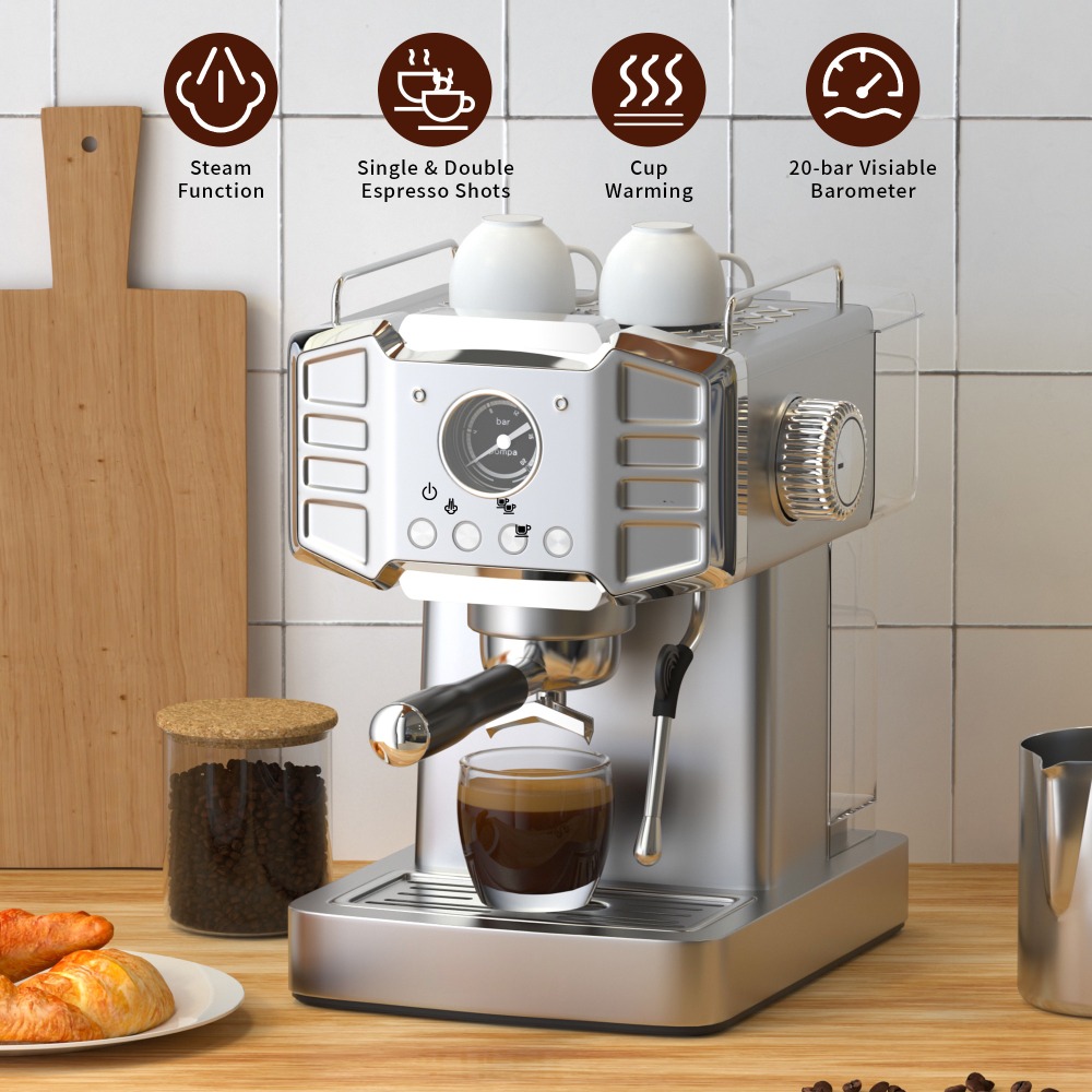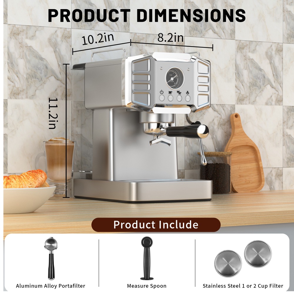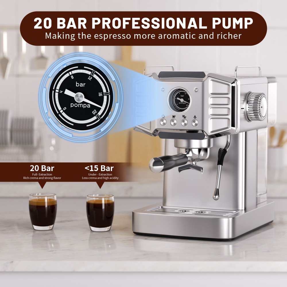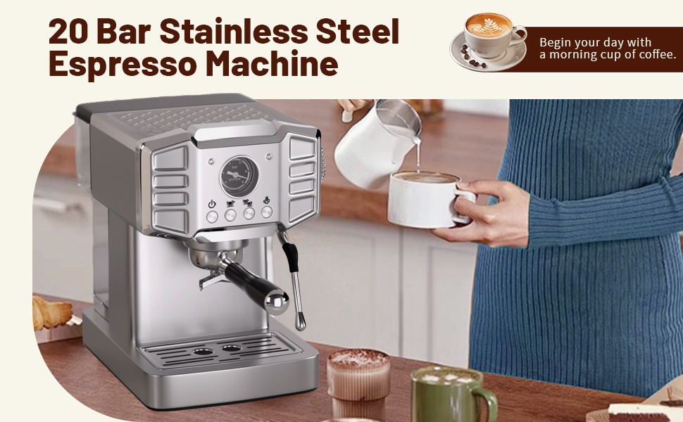首页> 全部类目> 咖啡机及配件> Lusdvrot Espresso Machine with Milk Frother - 20 Bar Pressure, Stainless Steel, 1.8L Detachable Water Tank for Latte & Cappuccino