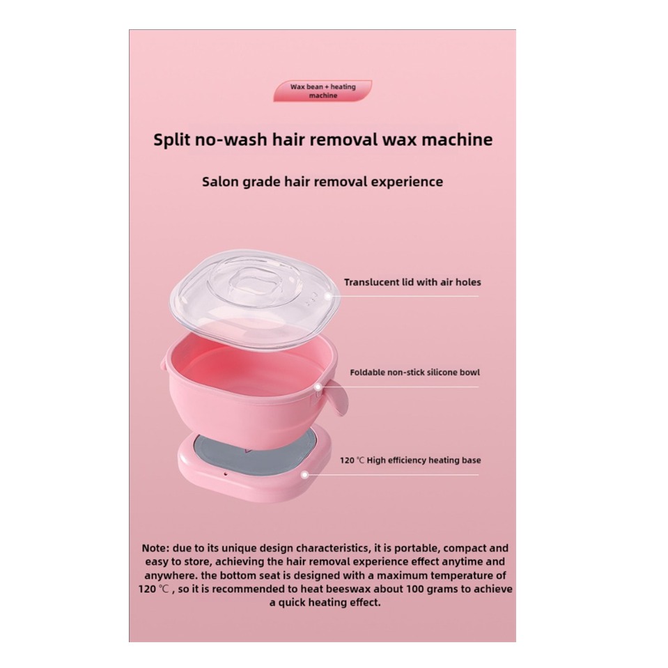 自营补贴Portable 3-in-1 Beeswax Warmer for Hair Removal - Compact & Travel-Friendly Design - Fast Heating with Adjustable Temperature - Includes Wax Sticks & Applicators三合一密蜡加热器,因其独特设计特点为便携、小巧、易收纳,实现随时随地可脱毛体验效果,底座设计最高温度为120℃,所以建议加热蜜蜡的用量在100克左右达到快速加热效果。