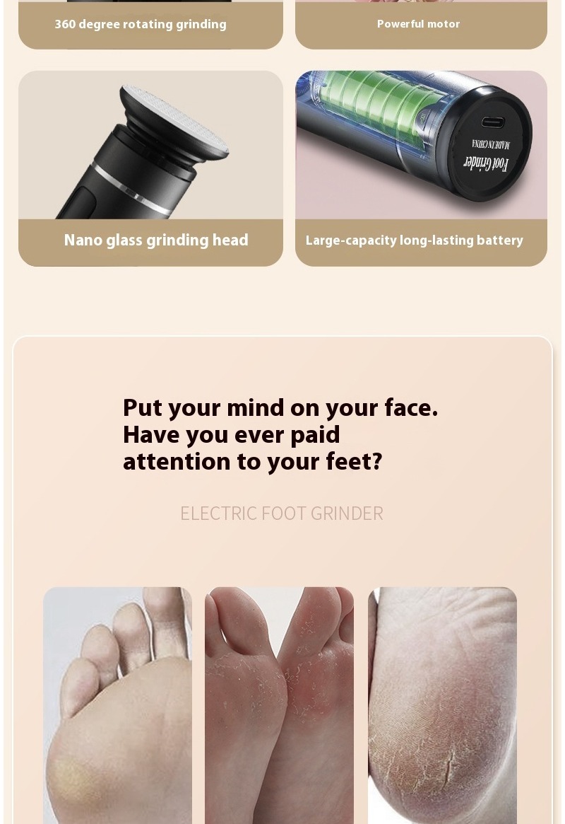 自营补贴1PC Callus Remover for Feet - Professional Pedicure Tool with Abrasive Roller, Cracked Heels or Hard Skin, Ergonomic Design for Travel, Home Use, or Gifts.1PC足部老茧去除器-专业的修脚工具,带有磨料滚轮,开裂后跟或硬皮肤,符合人体工程学设计,适合旅行,家庭使用或礼品。,专业旋转打磨,打造光滑美足,无痛安全去角质,可充电且防水(多功能修脚工具)