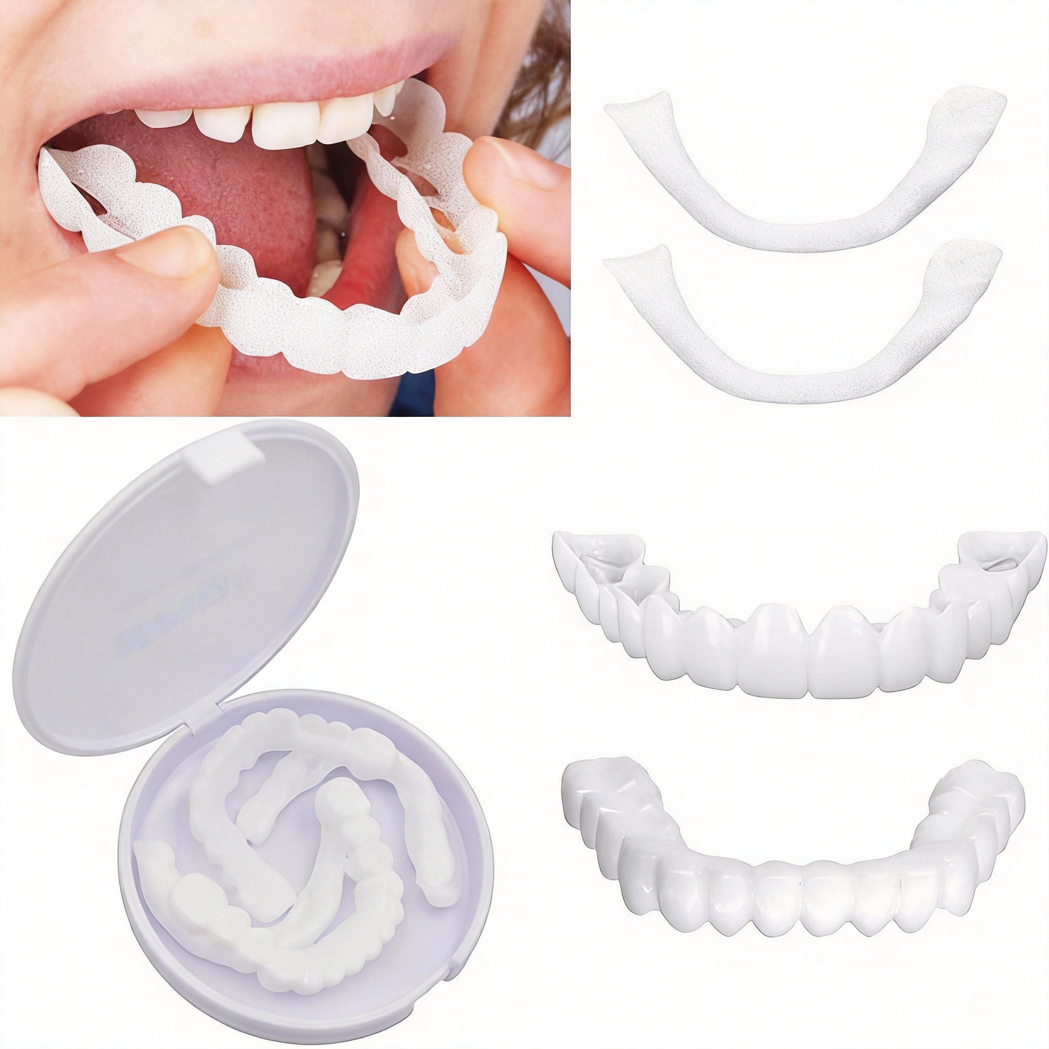 自营Snap-On Teeth Smile Veneers Silicone Comfortable Flex Fit Dentures for Top & Bottom Teeth | White Tooth Cosmetic Cover卡扣式美牙贴面 硅胶舒适弹性贴合假牙 上下牙通用, 白色牙齿美容遮饰片