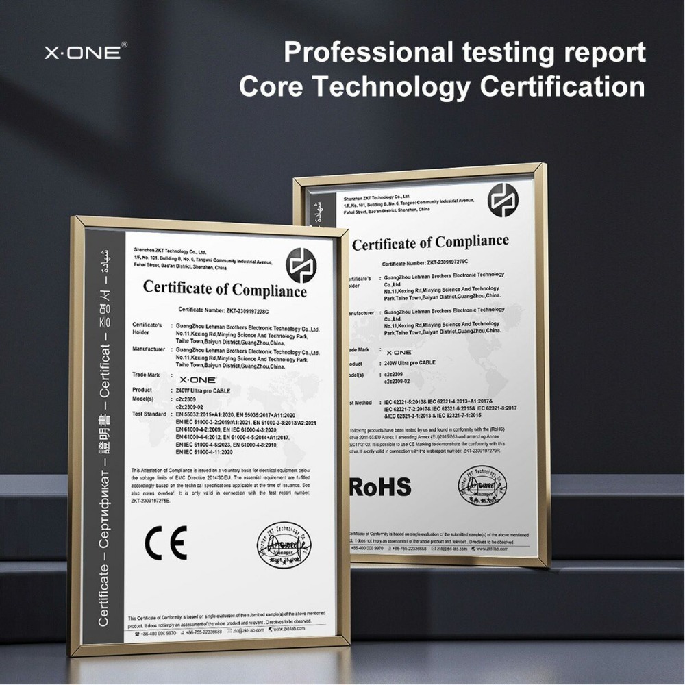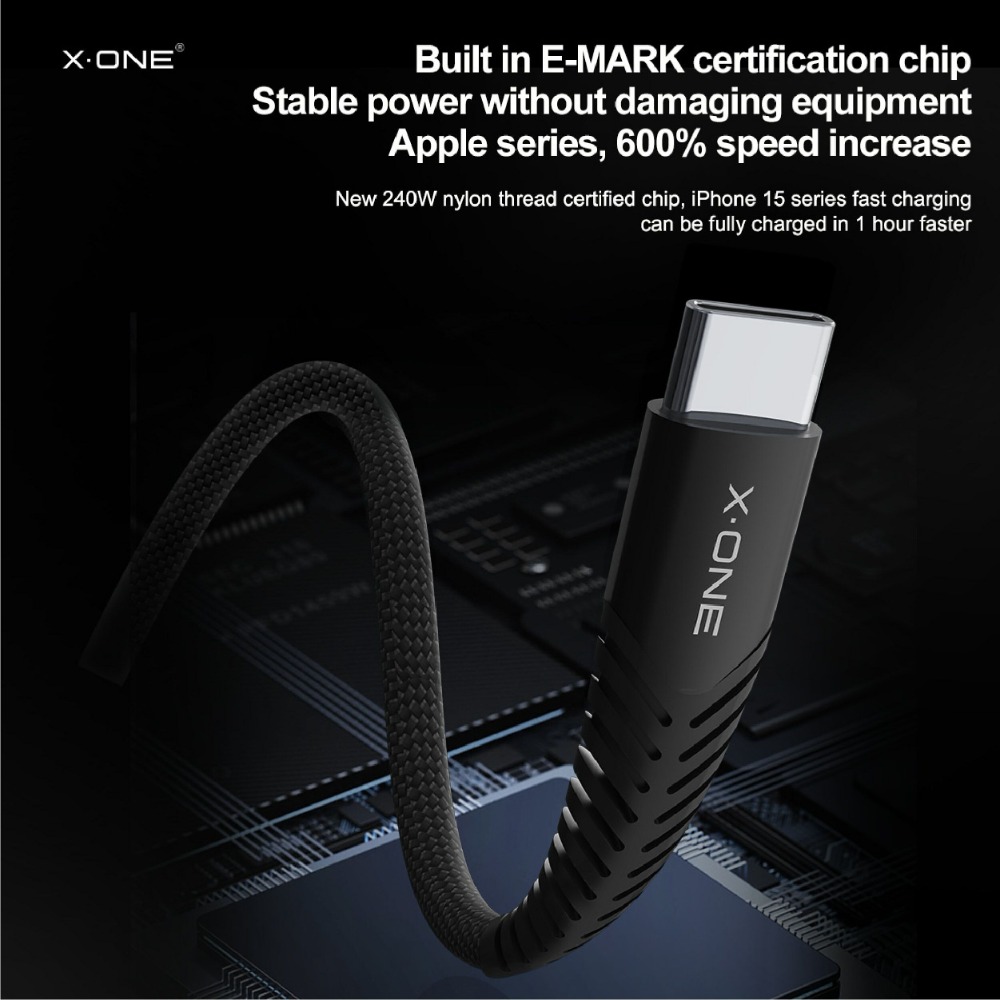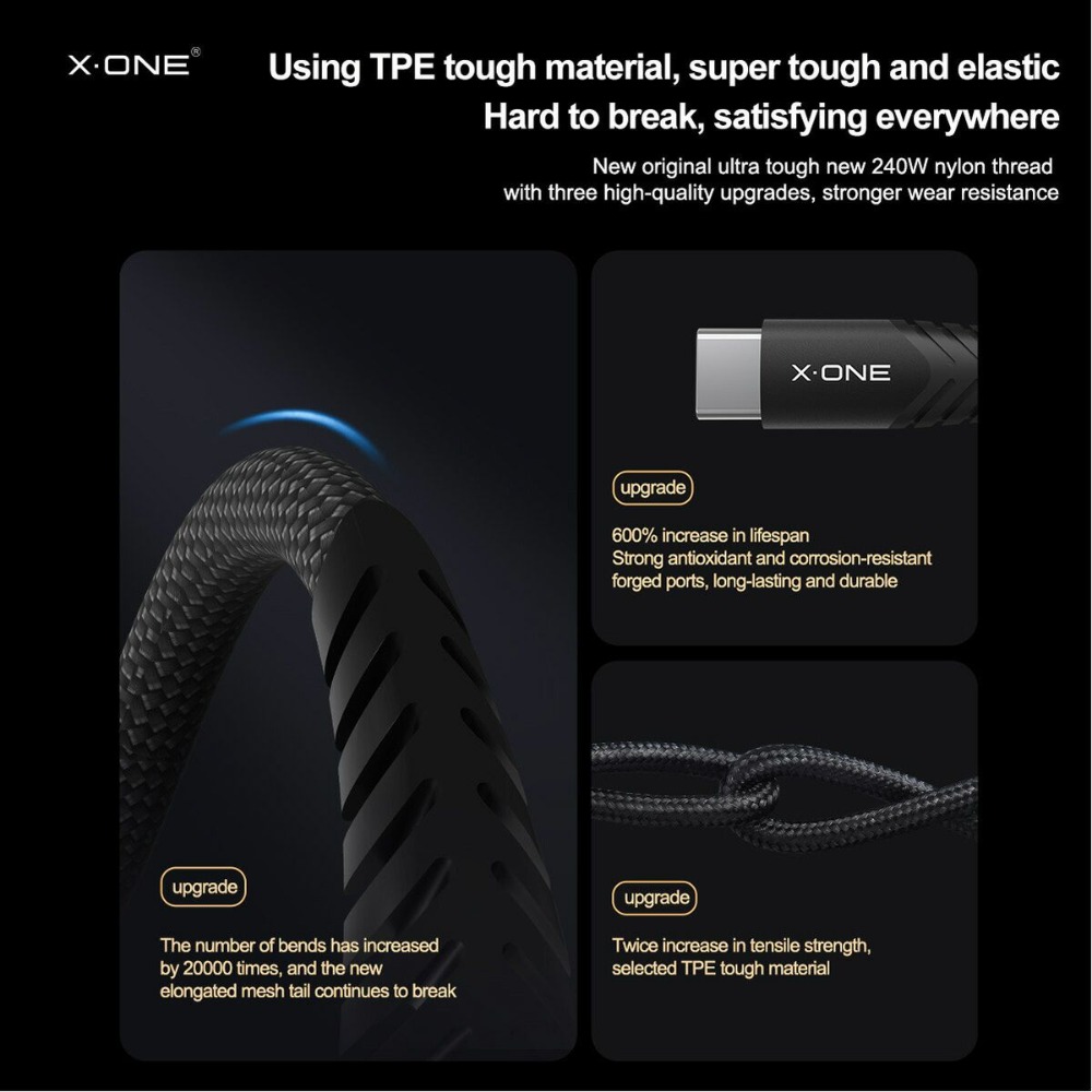 XONE's new 240W Type c-type c fast charge cable nylon thread body is made of non shedding nylon braided thread,which is resistant to bending and does not break. It has a strong antioxidant and corrosion-resistant forged end, ensuring long-lasting durability.