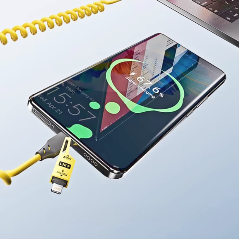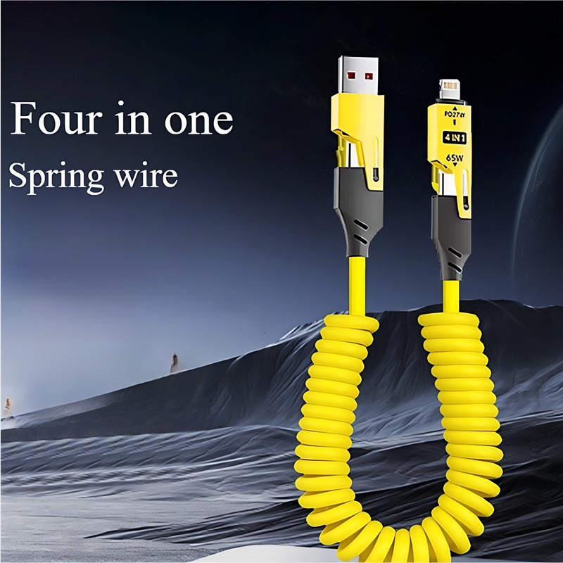 首页> 全部类目> 数据线、充电器和适配器> 2025 NEW 4 in 1 Coiled Universal Functional USB Charging Cable - Fast Charging & Data Sync for iPhone, iPad, Samsung & More - 4 in 1 - Yellow - 6ft charging cable one charger