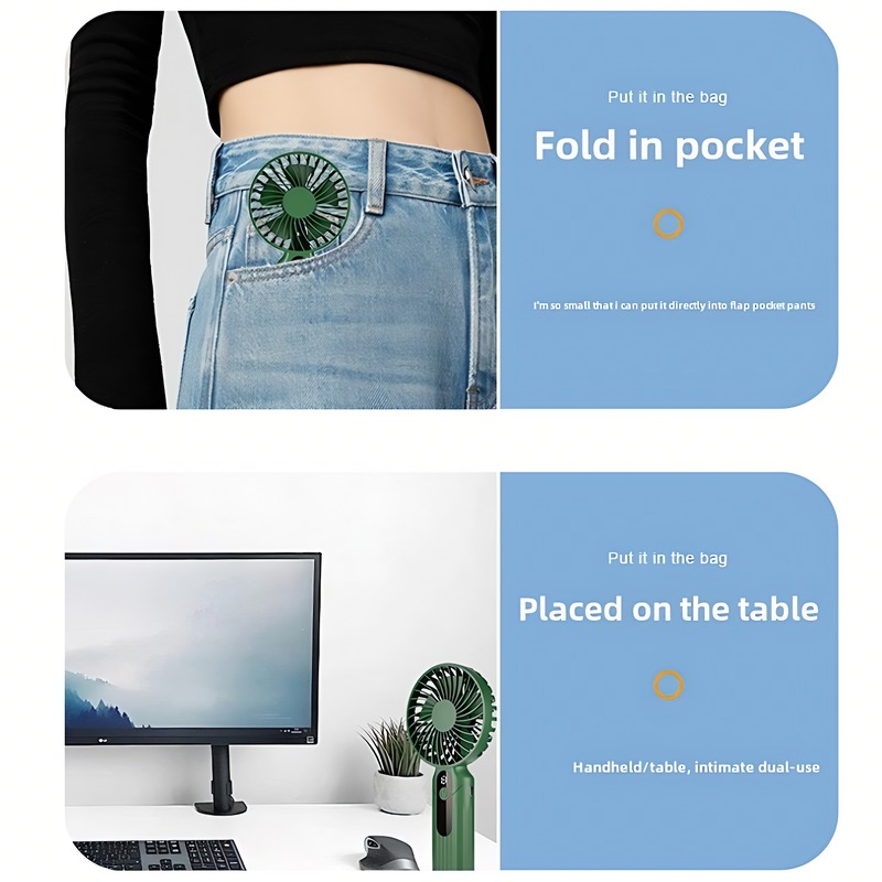 自营High-Speed Powerful Mini Handheld Fan - Ultra-Silent USB Rechargeable with Large Battery & Long Life, Strong Wind Cooling Fan for Summer新型高速强风迷你小风扇,手持超静音,小容量大电池USB充电,超长续航,夏日必备。,户外出行、办公室办公、居家休闲、运动健身全适配,三档风速随心调,静音无扰