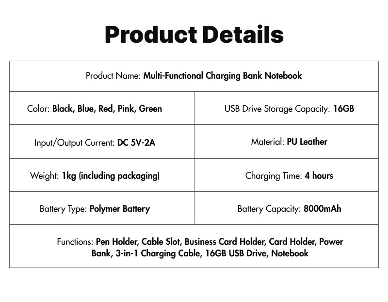 首页> 全部类目> 电子笔记本> Multifunctional Charging Notebook - Portable Power Bank & Writing Journal with Long-Lasting Battery - Smooth Writing Paper for Office & Study