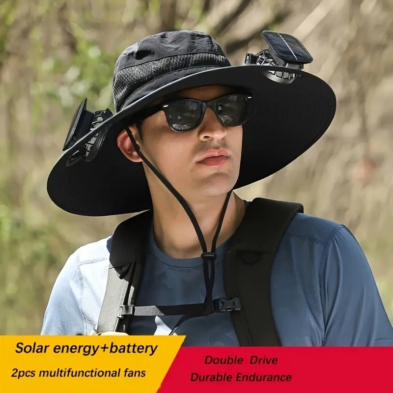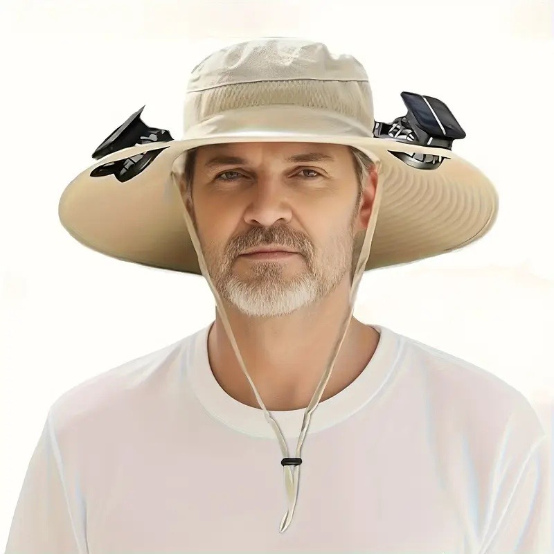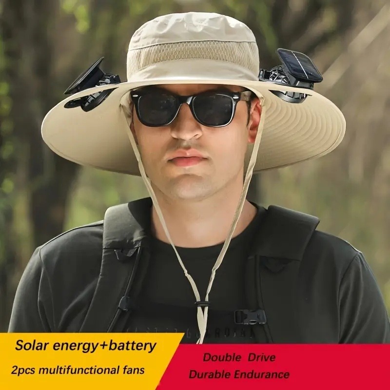 首页> 全部类目> 运动和户外帽子> Sunscreen and sun hat with cooling function, novel and practical 3-speed adjustable solar fan outdoor wide brimmed hat, suitable for men and women over 50 years old, built-in 2 fans fisherman hat beach hat
