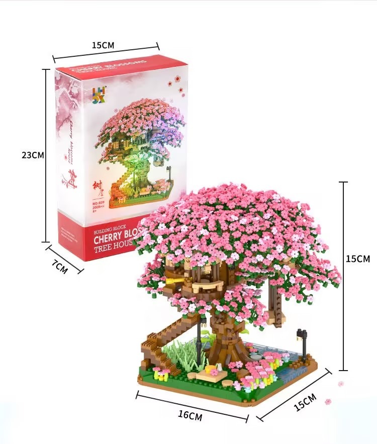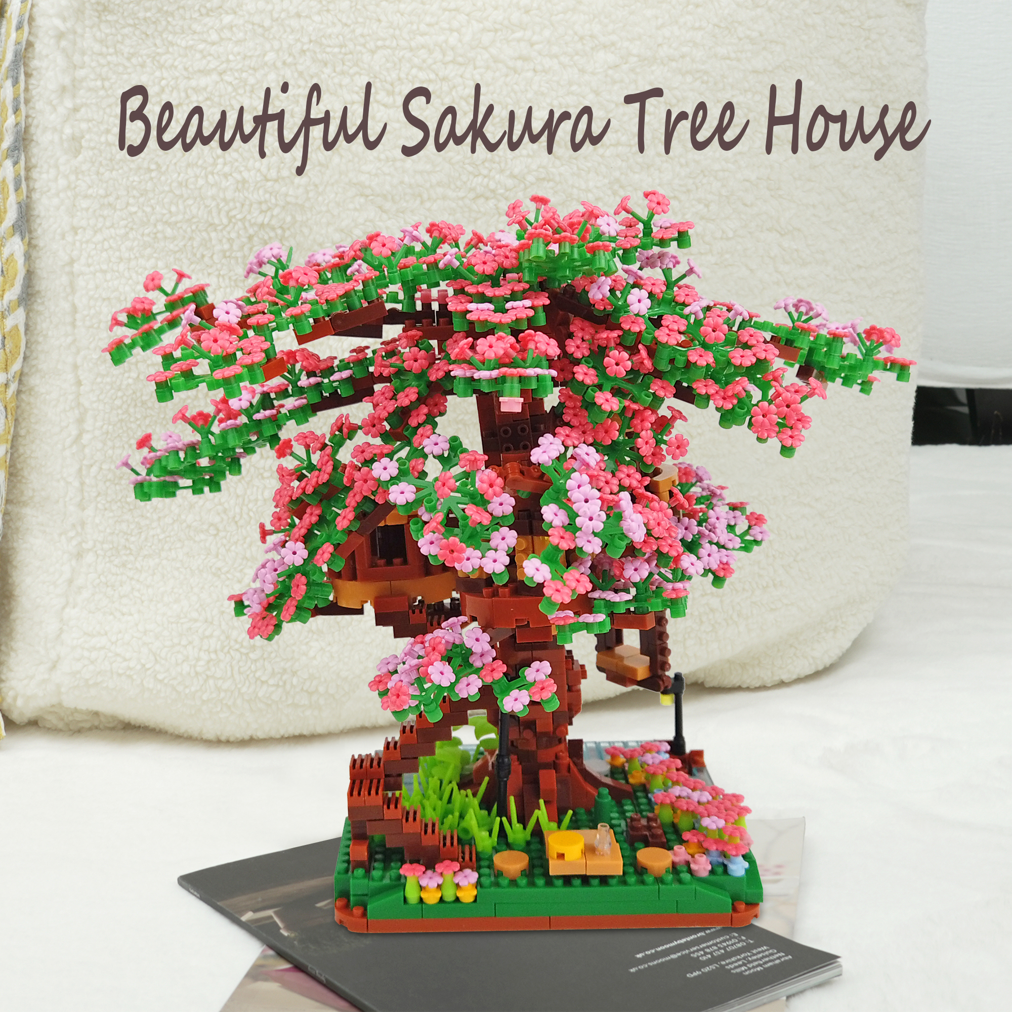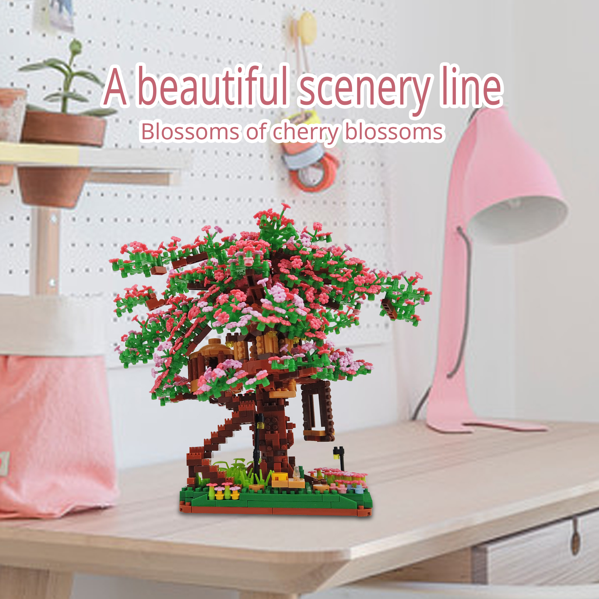 2008pcs Cherry Blossom Tree House Building Block Toys Small Particles Creative Building Block Toys Valentine's Day Gift Easter Gift