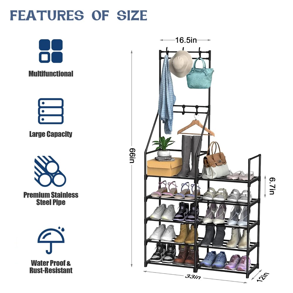 首页> 全部类目> 置物架> Double Row Hanging Shoe & Hat Rack - Space-Saving Entryway Organizer for Shoes, Hats & Clothing, Perfect for Hallways & Cloakrooms