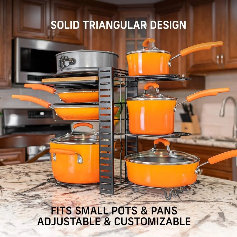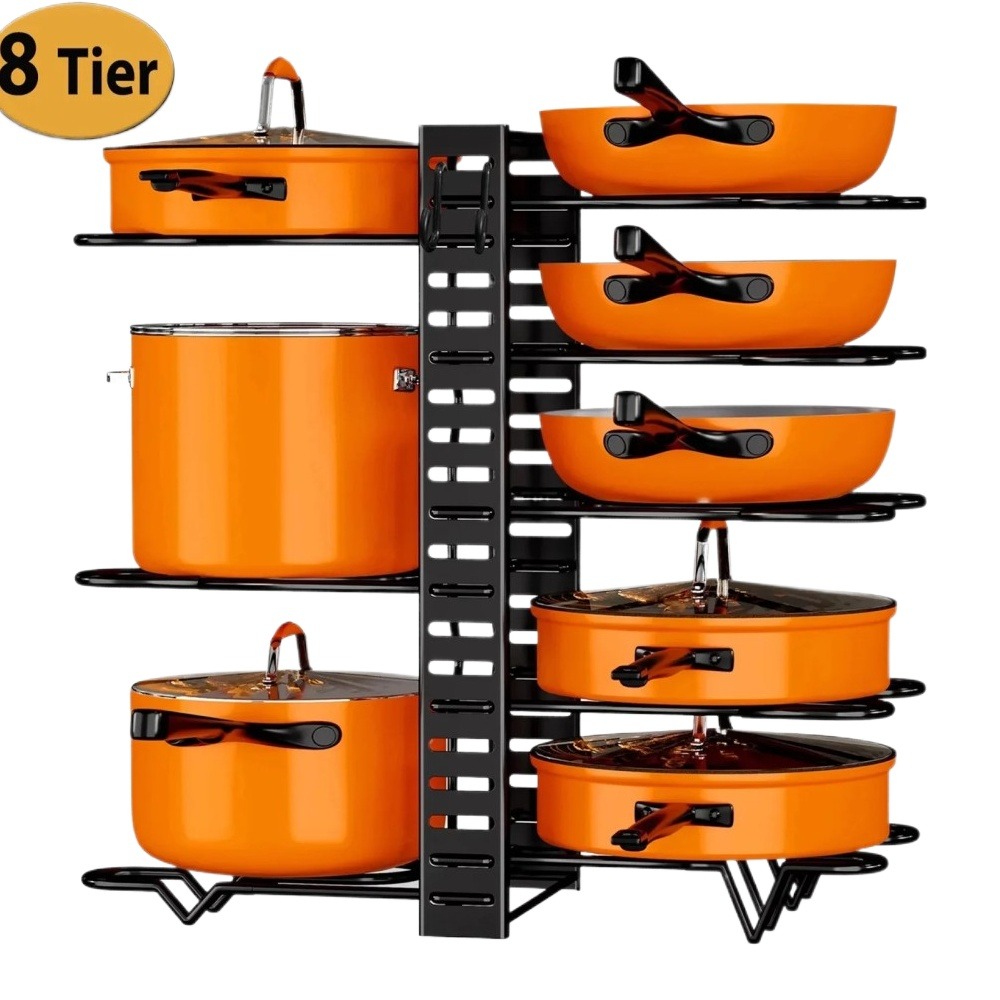 首页> 全部类目> 置物架> 8-Tier Kitchen Shelf Organizer - Heavy Duty 4.5MM Thick Steel with 4 Hooks, Space-Saving Storage Utensils & Cookware