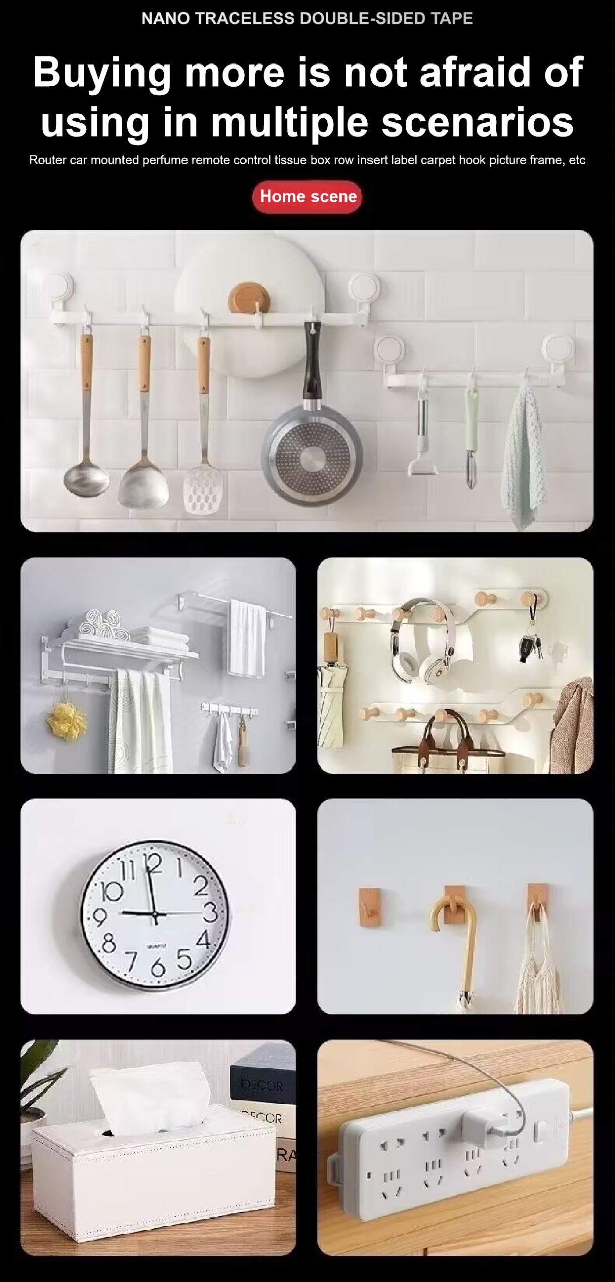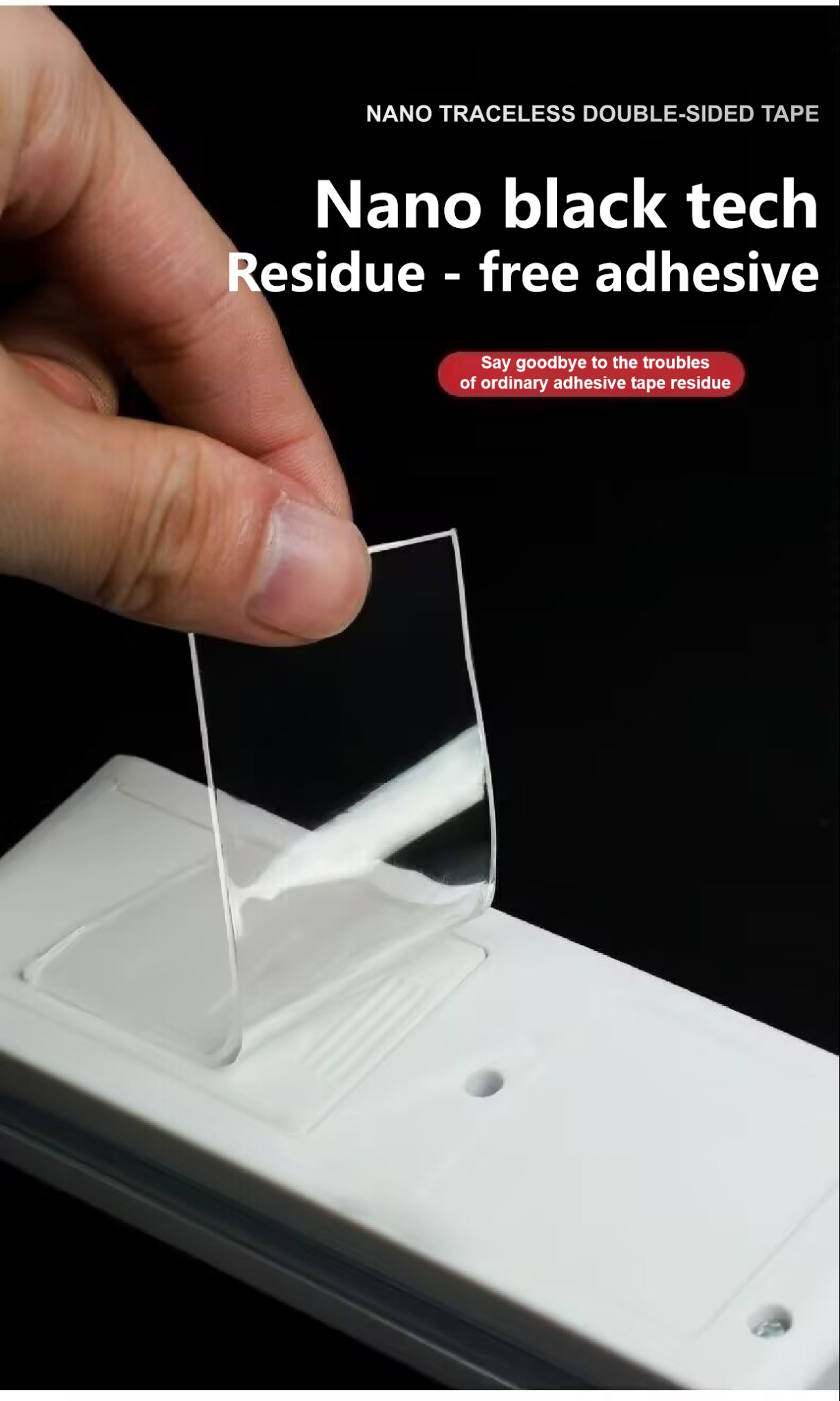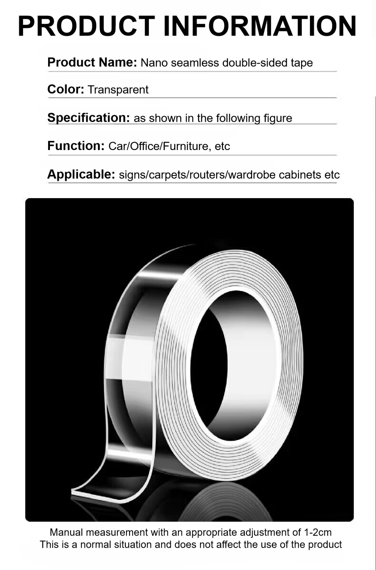 首页> 全部类目> 粘合剂、胶带和密封剂> Nano Double-Sided Transparent Tape - Strong Reusable & Waterproof Adhesive for Kitchen, Bathroom & Home Organization | Invisible Mounting Solution for Hooks, Mats & Decor (1 Roll)