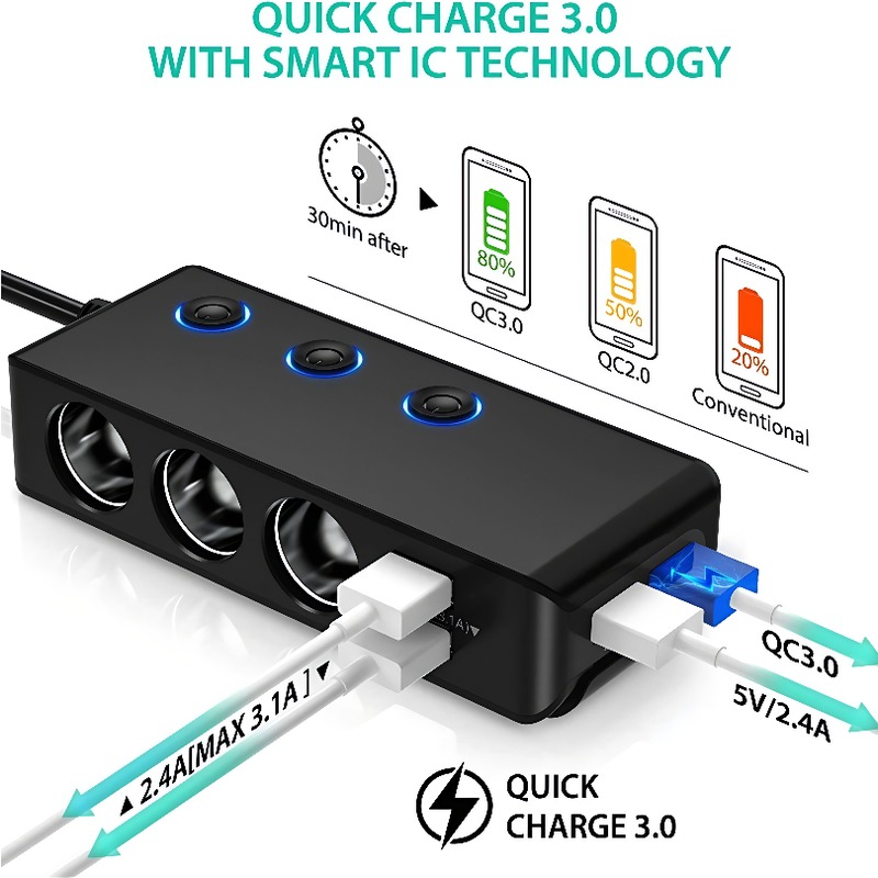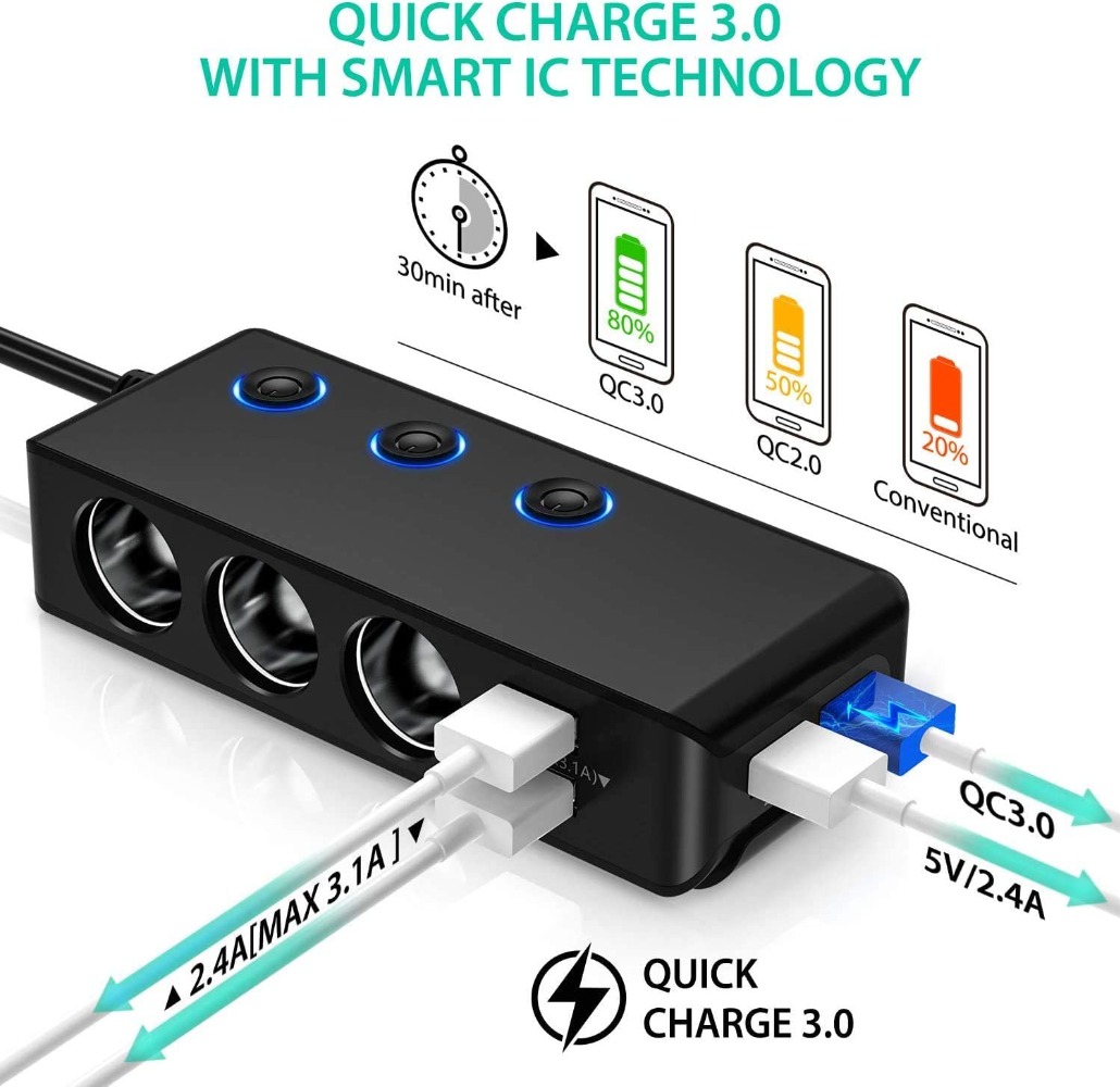 首页> 全部类目> 车载点烟器> 3 Port Car Cigarette Lighter Adapter Stable Power Supply Splitter for Travel Charging