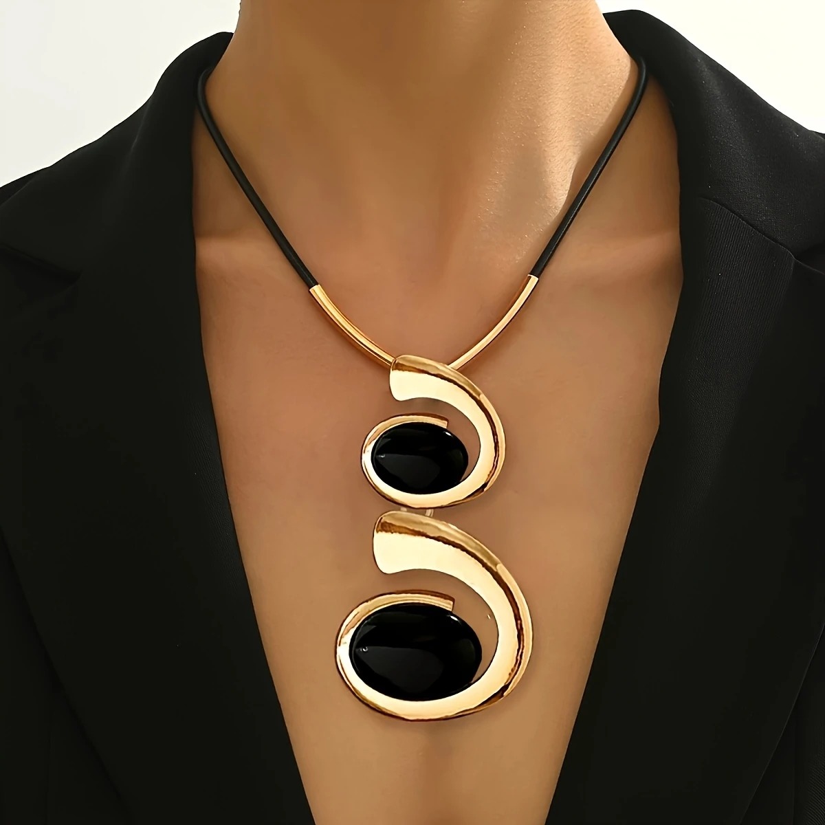 自营3 Piece Women Jewelry Set Geometric Black Pendant Necklace Earrings Retro Exaggerated Design Everyday Party Gift一对耳环项链,1套3,当下最流行的一对耳环项链最流行的女性珠宝套装复古秋冬创意夸张几何黑色吊坠项链耳环套装适合日常一体式派对礼品