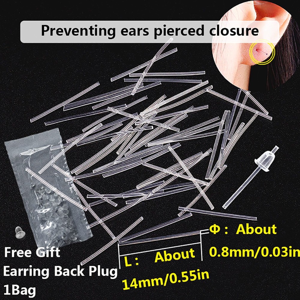 1Box Pretty Hypoallergenic Transparent Earrings On Plastic Posts About 14mm Clear Invisible Ear Bar Suitable For Women's Daily Wear