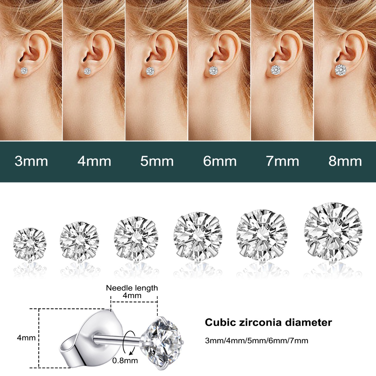 自营12pcs Women'S Flat Back Earrings, Titanium Steel Anti Allergy, Synthetic Zirconia Earrings, Women'S Holiday Gifts, Jewelry Gifts, Fashion Jewelry for Women6对女士平底耳钉,钛钢抗过敏,合成钻石耳钉,女士节日礼物,珠宝礼物,时尚珠宝,华子钻石蝴蝶扣钛钢耳钉,以坚韧钛钢为基底,镶嵌璀璨华子钻石,别致蝴蝶扣设计精巧美观,佩戴舒适又尽显优雅时尚气质。